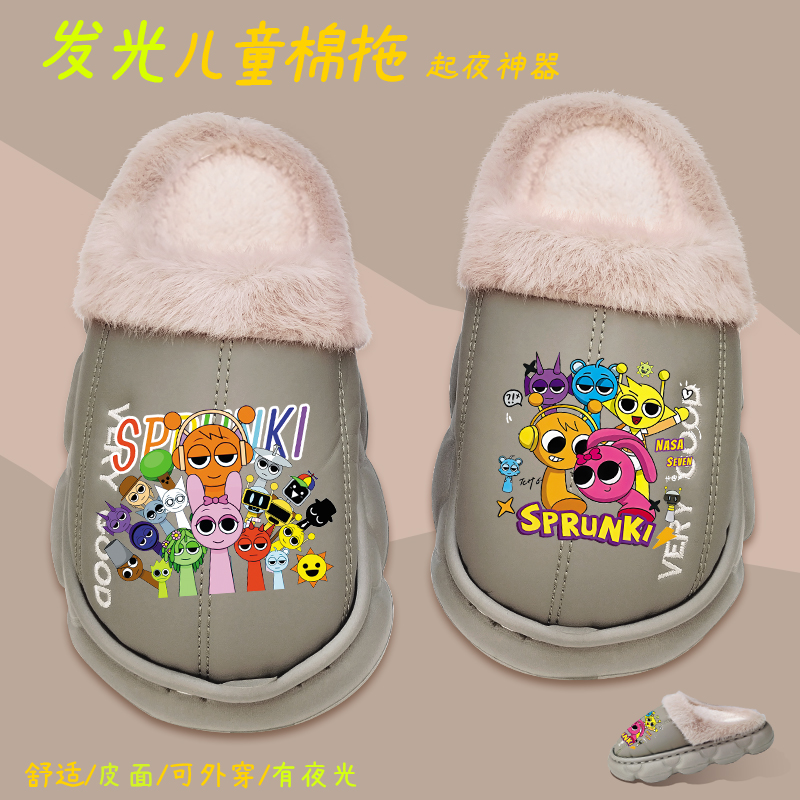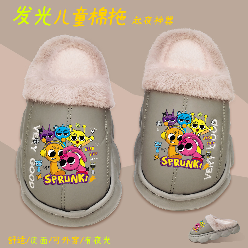 夜光节奏盒子儿童棉拖鞋秋冬加绒