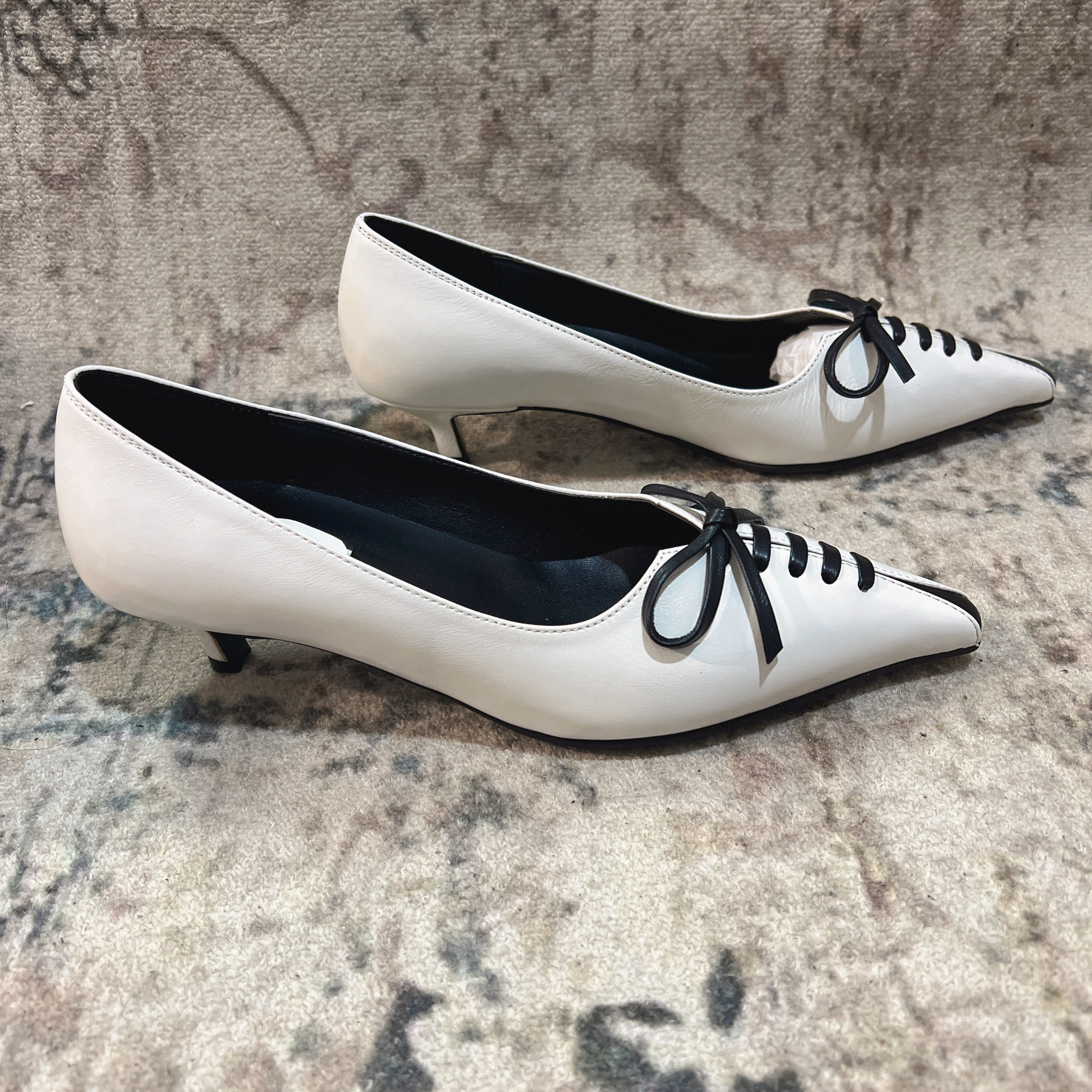 法式尖头浅口单鞋女2026春新款气质蝴蝶结细跟仙女风配裙子小皮鞋
