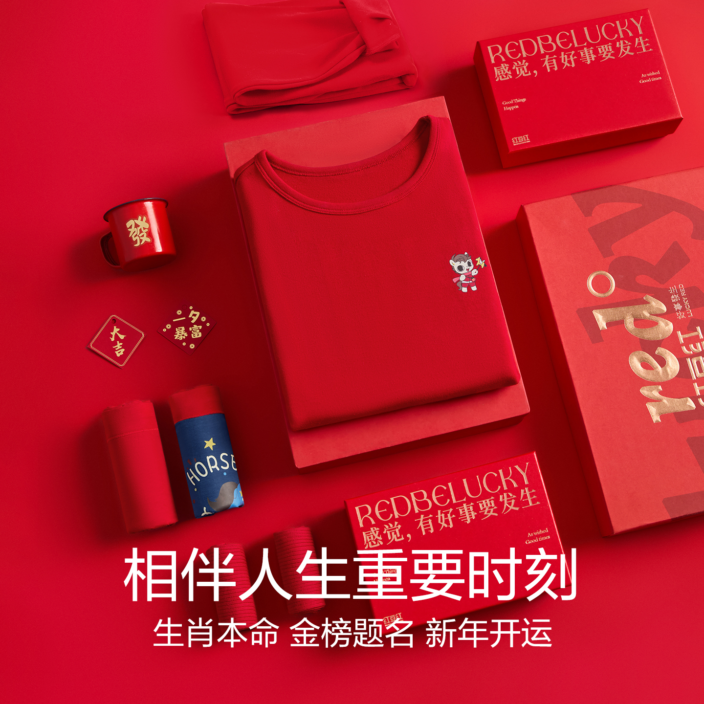 红豆居家儿童本命年红色马年内衣保暖套装中大童12岁纯棉秋衣秋裤