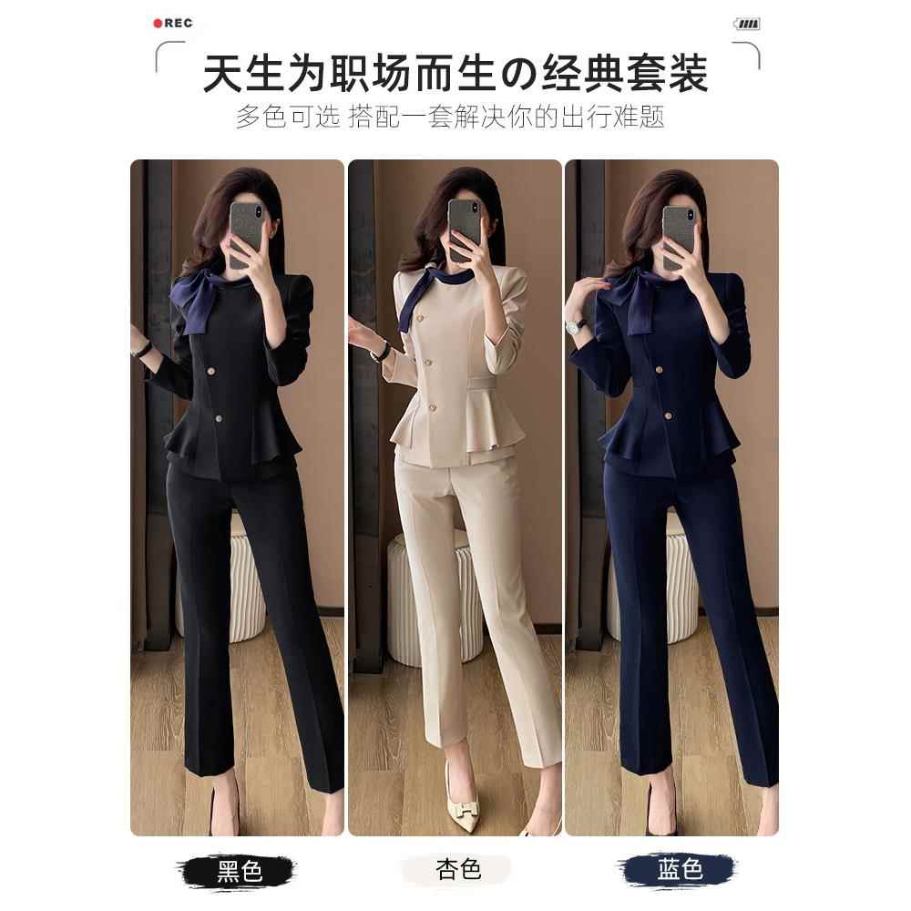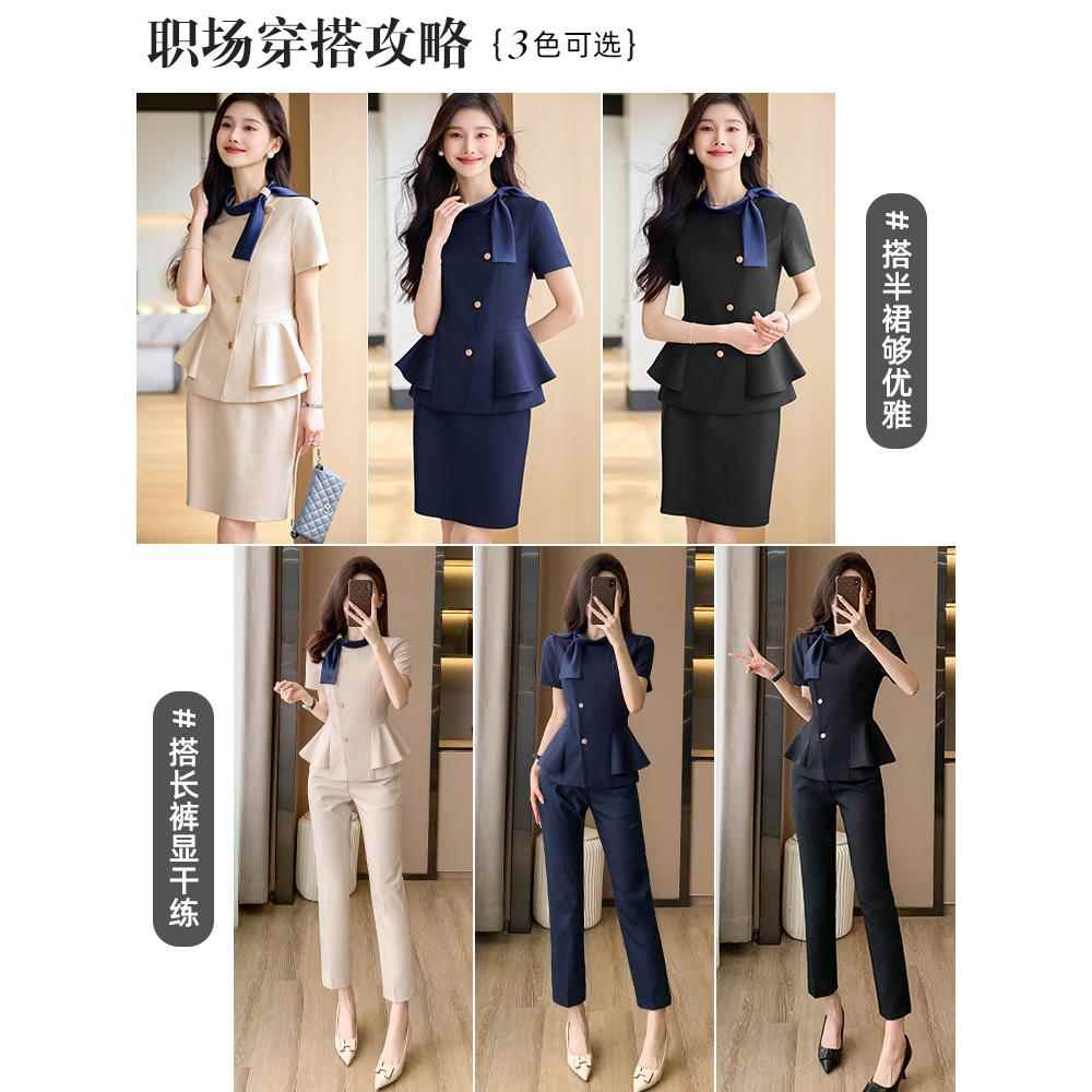 杏色工装西装外套女春秋新款职业套装美容院酒店前台接待工作服夏