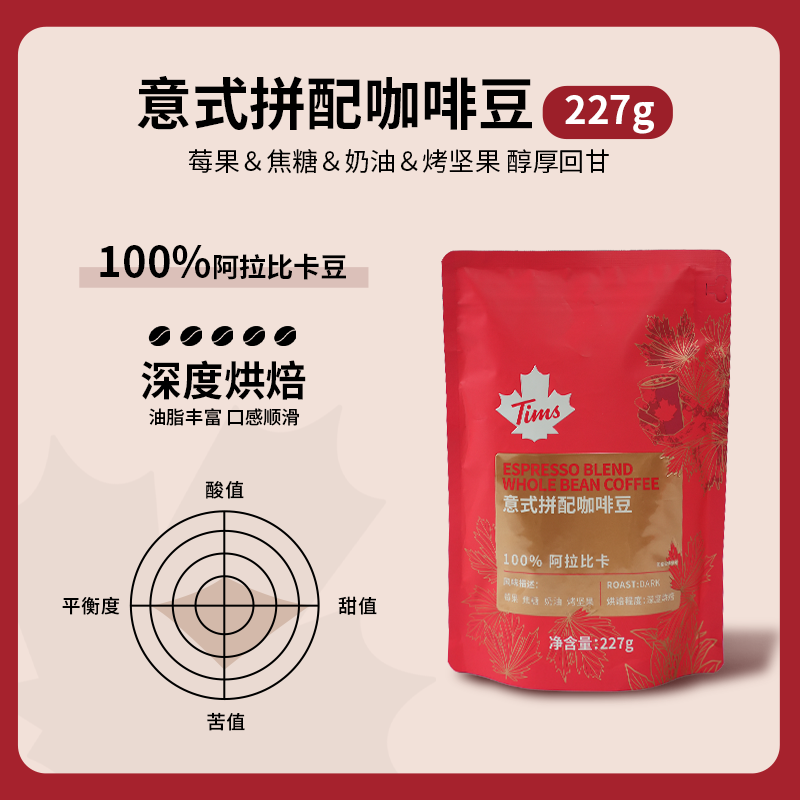 【百补】Tims天好咖啡阿拉比卡精品咖啡豆黑咖拿铁拼配咖啡豆227g