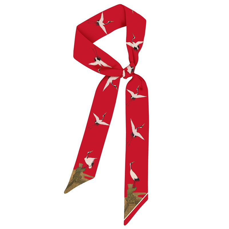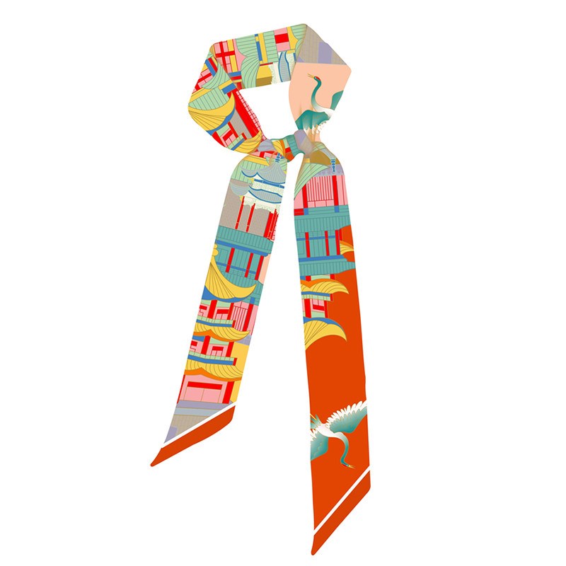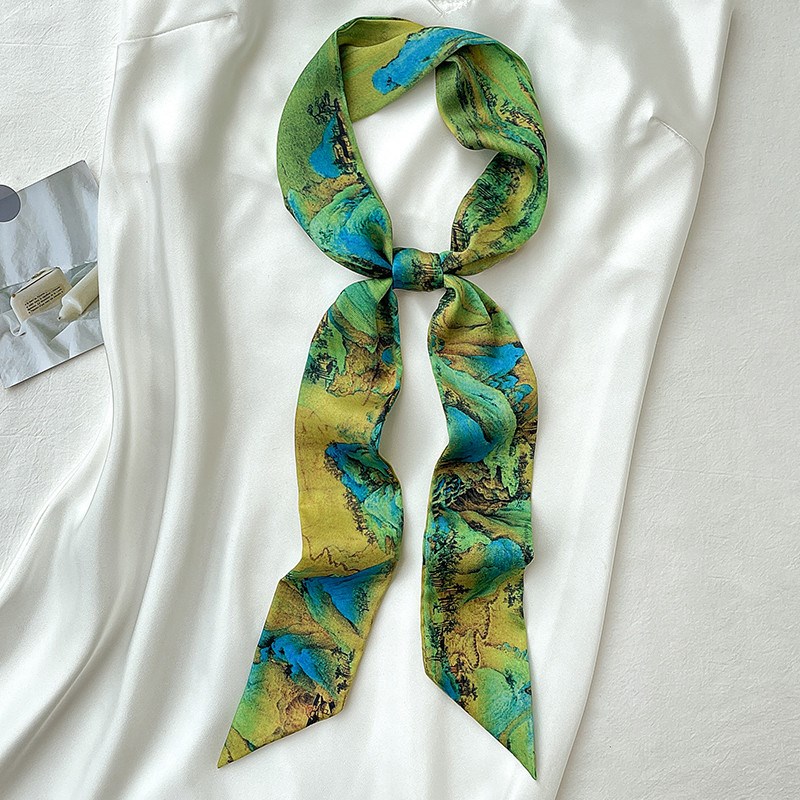 新款千里江山图带长条小丝巾女春秋夏季丝带扎头发窄绑包装饰脖子