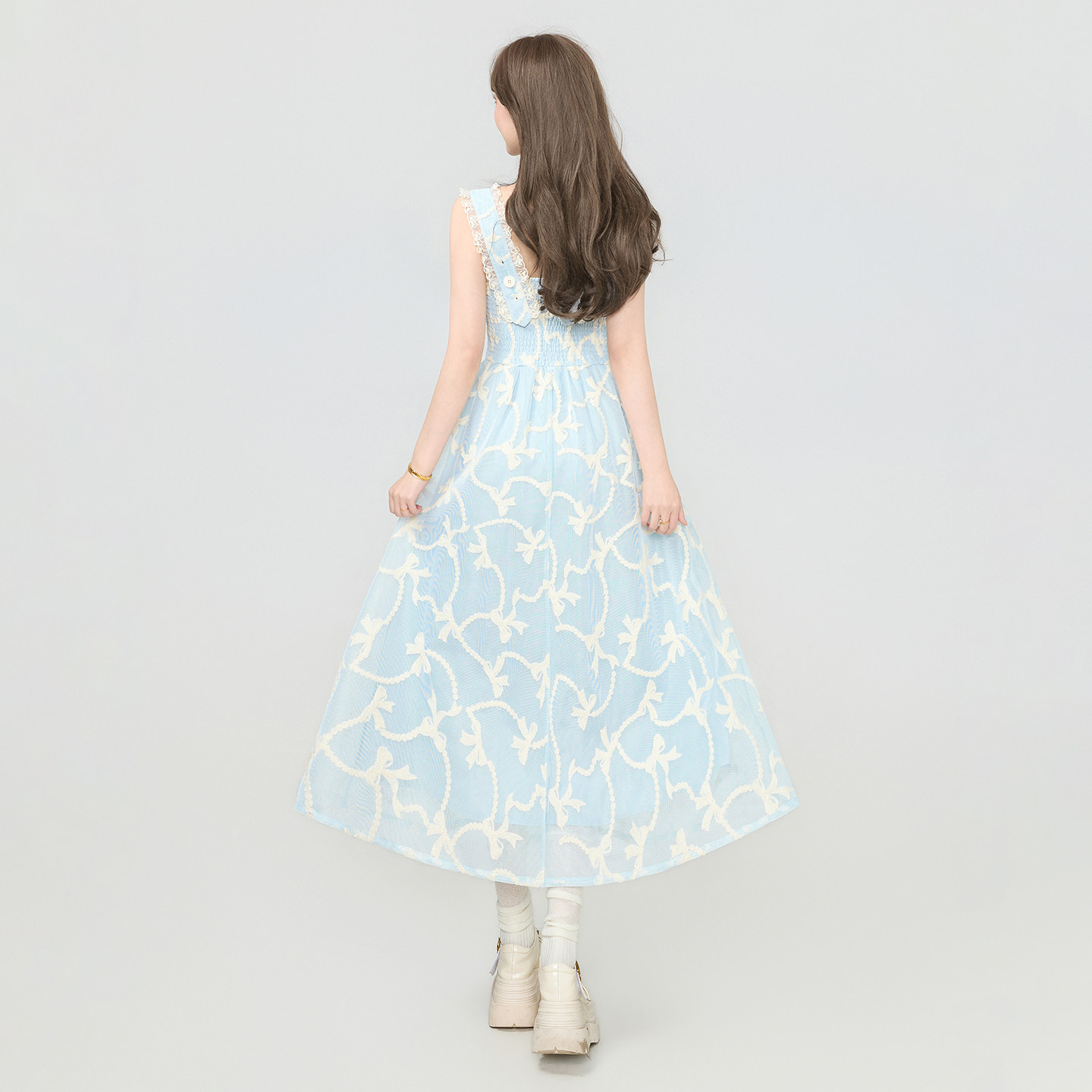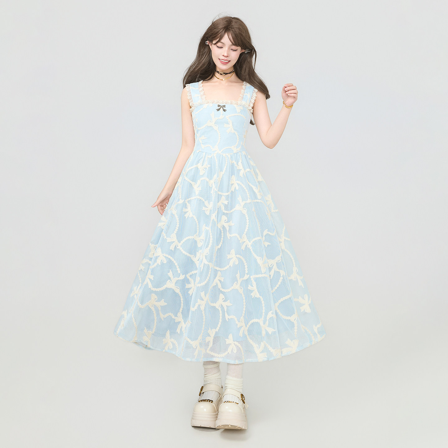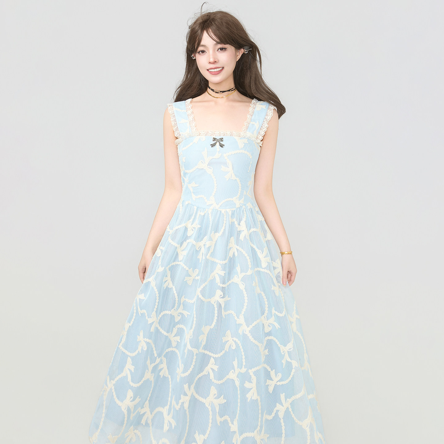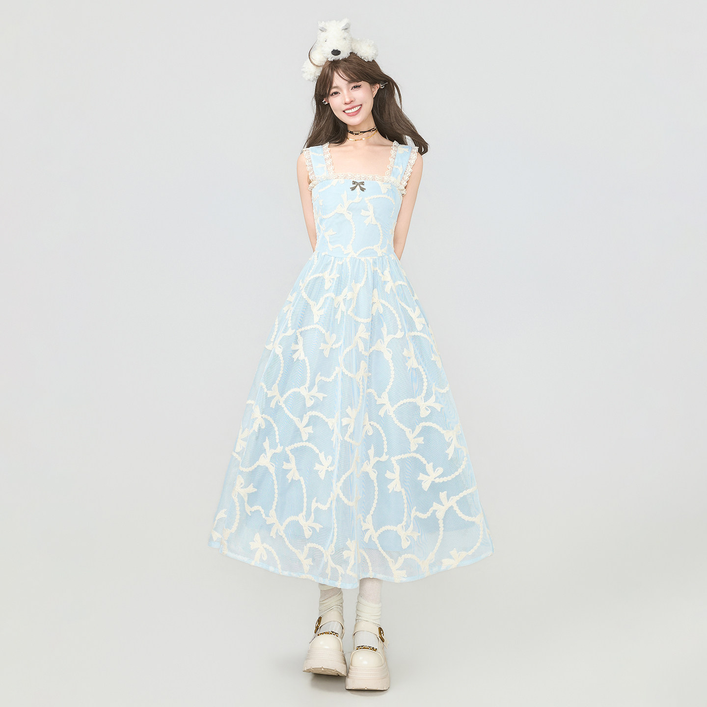 KEIKO 法式浮雕刺绣轻纱吊带连衣裙26夏季清秀感蕾丝花边无袖纱裙