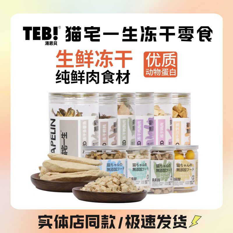 TEB汤恩贝猫宅一生猫咪冻干猫粮猫零食鸡肉鹌鹑多春鱼鸭肉金枪鱼