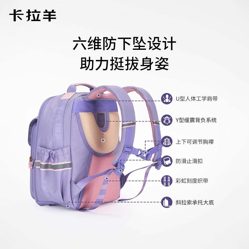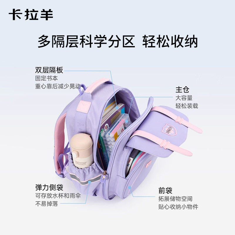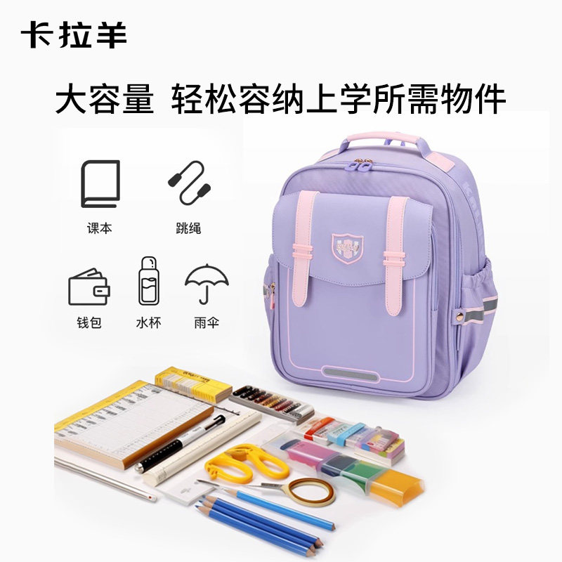 卡拉羊儿童书包小学生男生外出大容量背包日常护脊游玩女孩双肩包