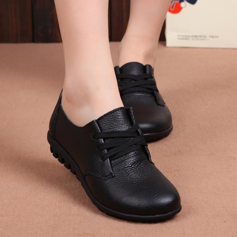 正品秋真皮防滑平底底单鞋式休闲皮鞋女春款妈妈鞋软女女鞋大码中
