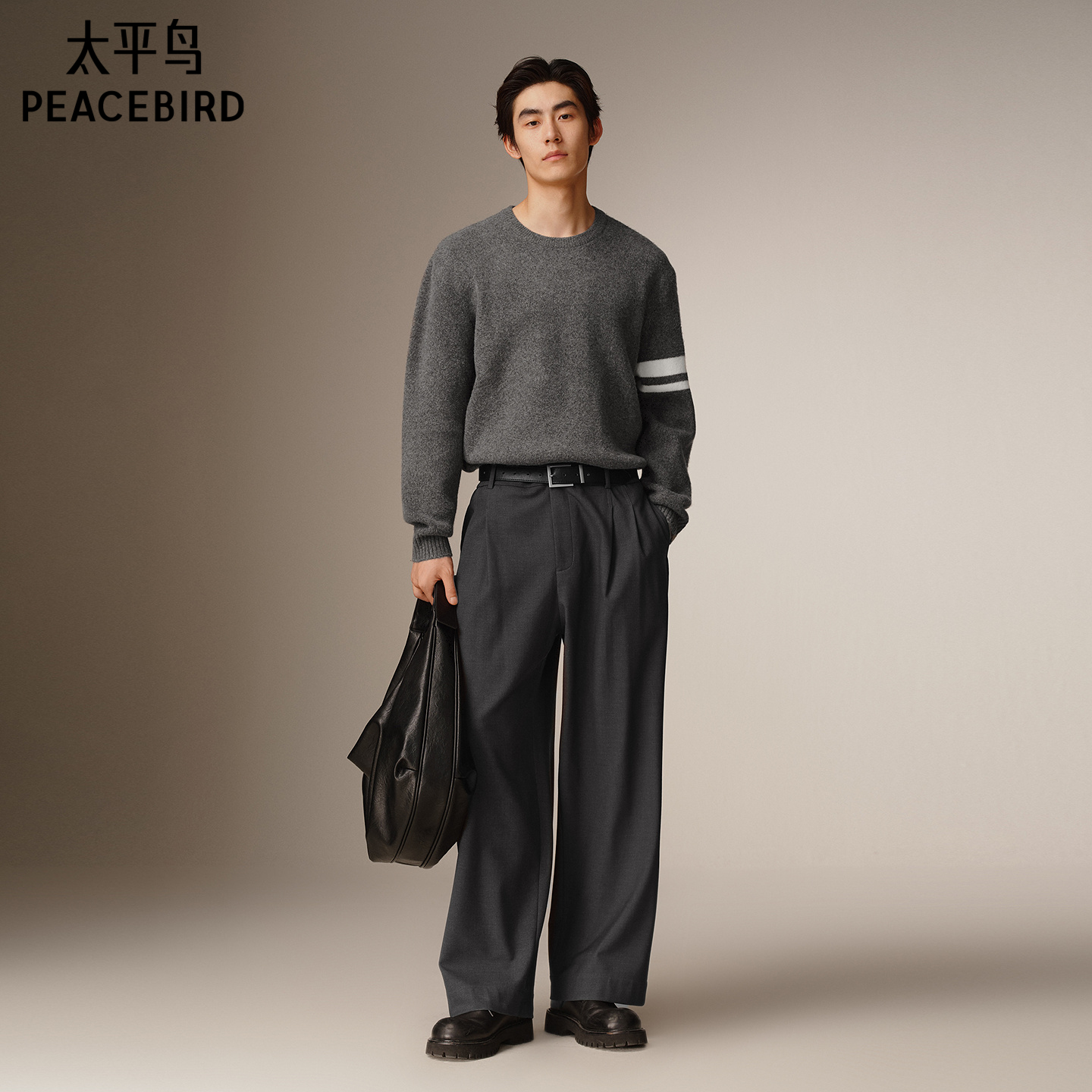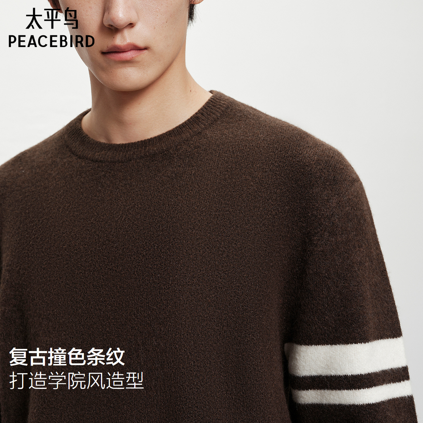 太平鸟男装 休闲毛衣新款撞色条纹慵懒毛衫休闲毛衫男 当季热卖Y
