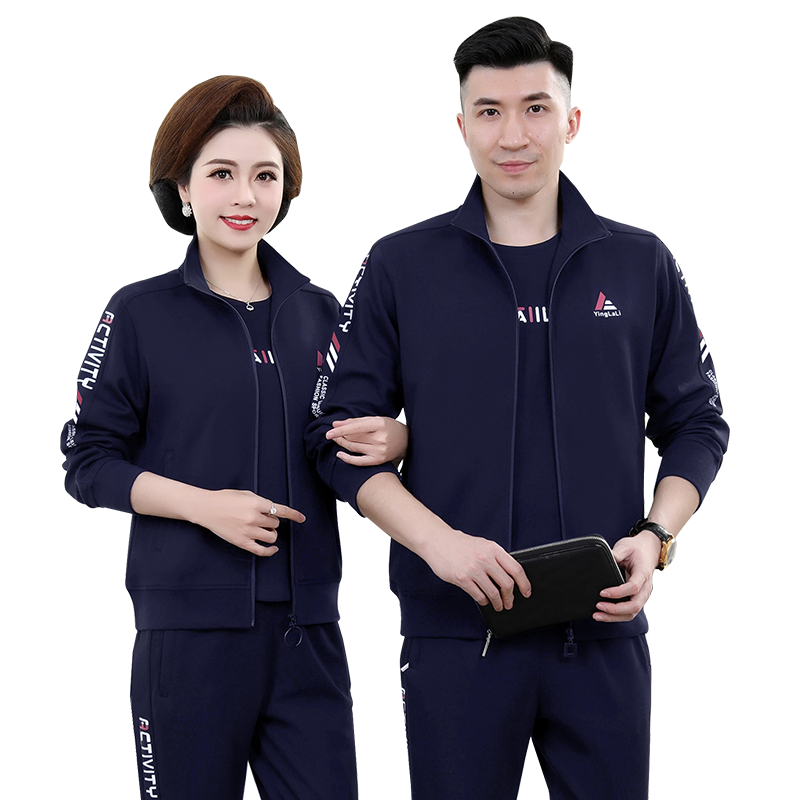 中老年运动套装男士秋装情侣跑步服外套大码爸妈卫衣休闲女三件套