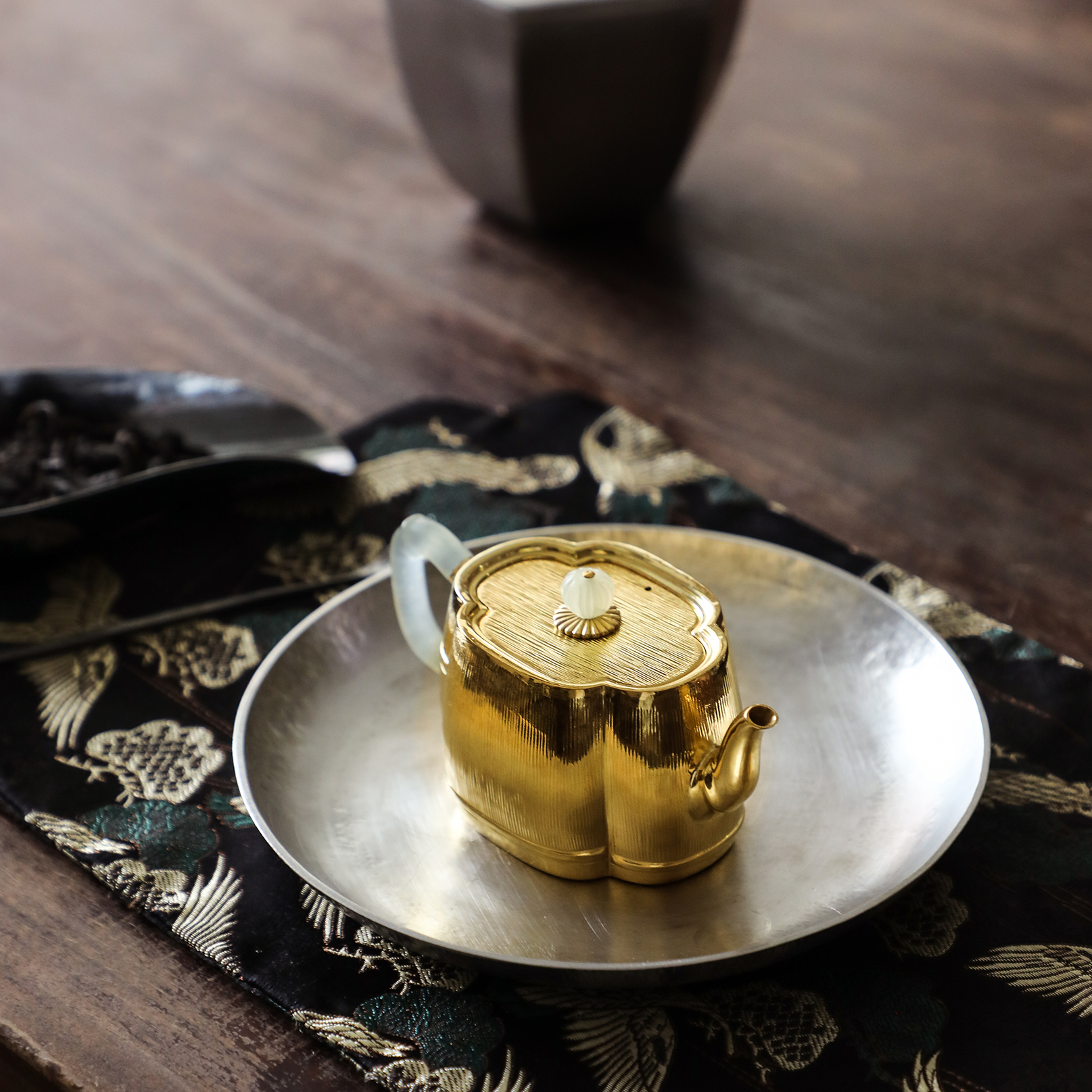 纯银时代鎏金竹韵泡茶壶足银999纯手工竹节精致文雅精工收藏120ml