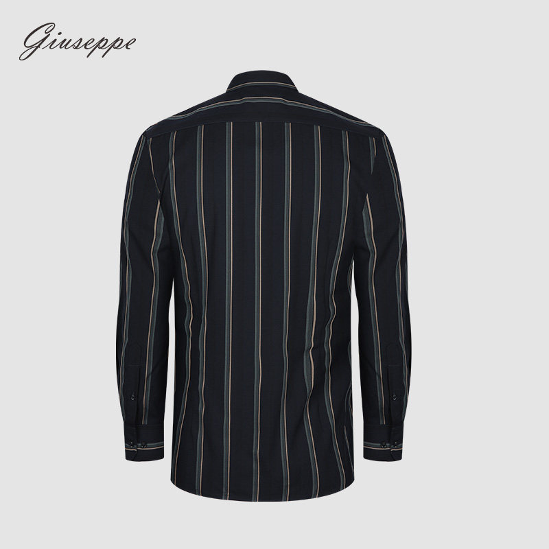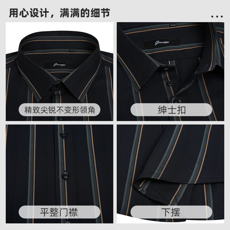 乔治白2025秋冬季衬衫男款长袖商务正装条纹通勤尖领休闲简约透气
