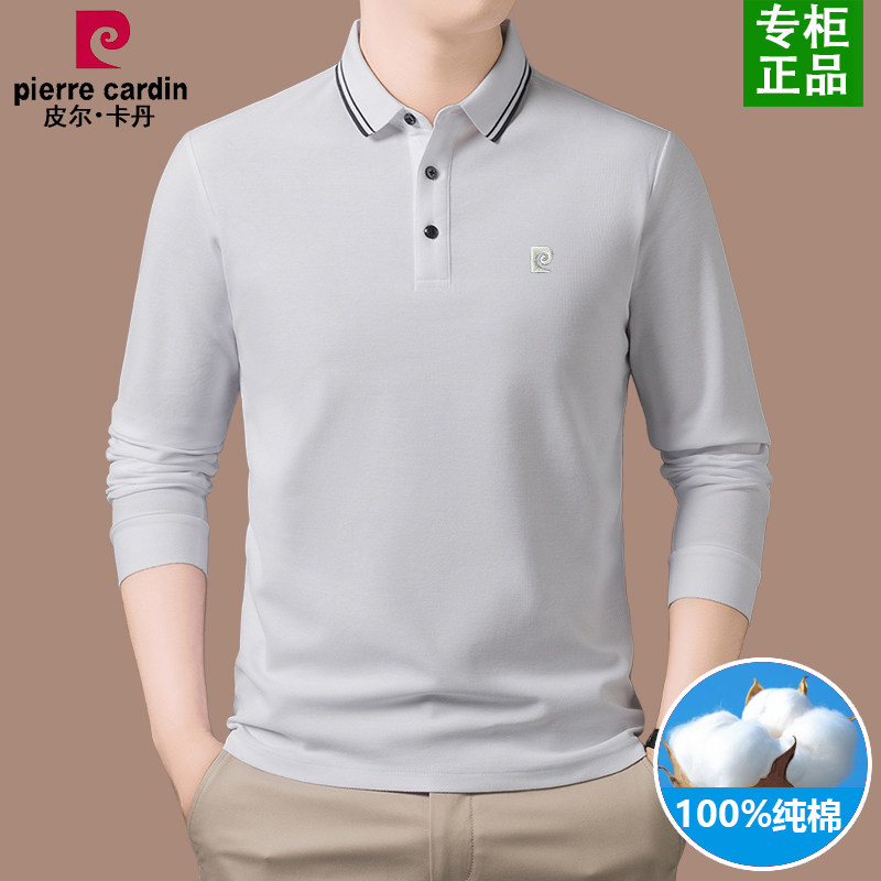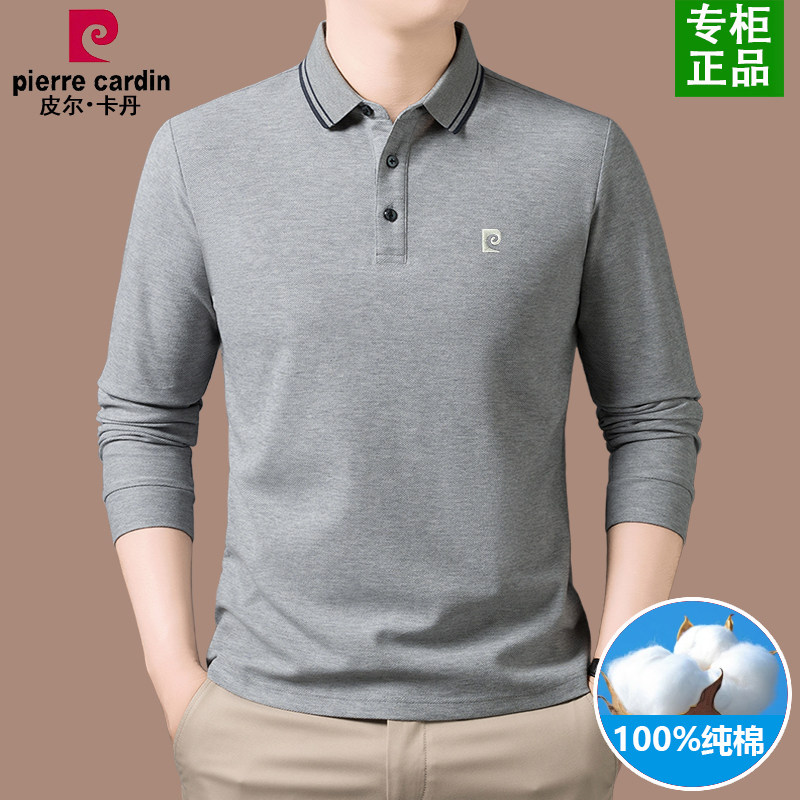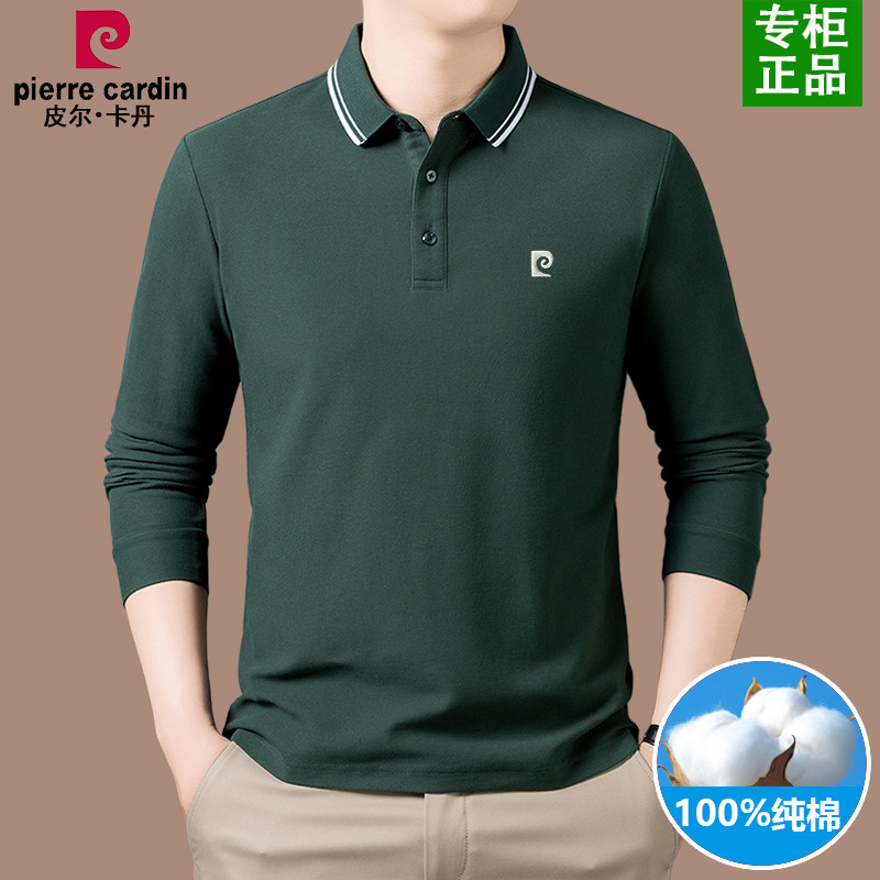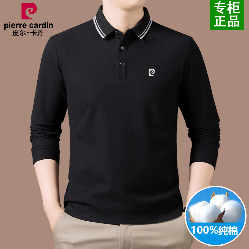 皮尔卡丹100%纯棉长袖T恤男2026春季新款翻领纯色商务休闲POLO衫