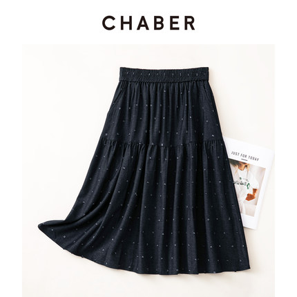 chaber小个子巧帛秋季新款显瘦感时尚波点半身裙女宽松中长款裙子