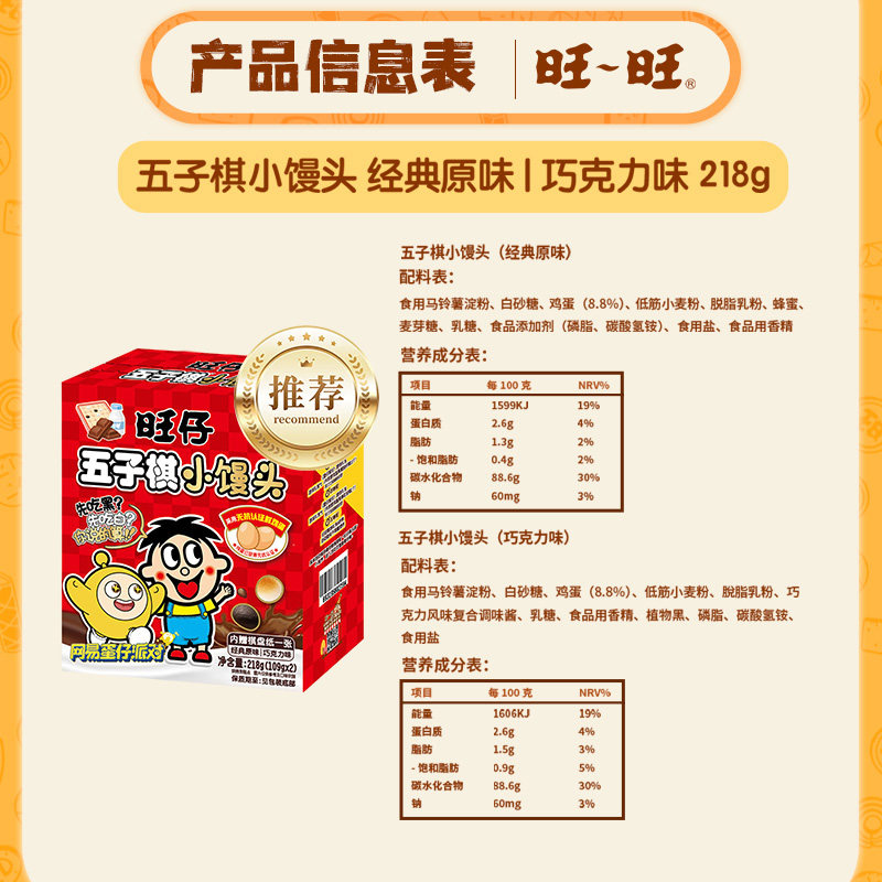 【蛋仔派对联名款】旺仔五子棋小馒头经典原味巧克力味解馋零食