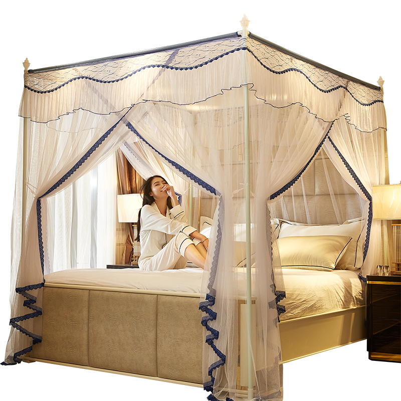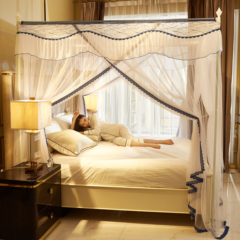 新款宫廷公主风蚊帐家用1.5m1.8m床公主风三开门落地加密加厚支架