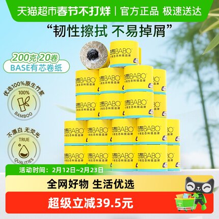【下拉享补贴】斑布有芯卷纸200g20卷卷筒纸原色竹纤维纸巾