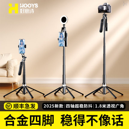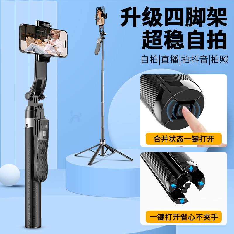 一键速拍】1.8米四轴自拍杆落地三脚架手机直播支架2025新款多功能相机单反通用四脚防抖云台便携式旅游拍照