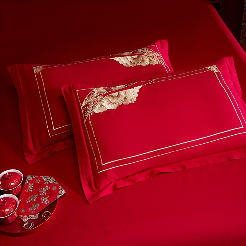 中式婚庆床上全棉四件套牡丹刺绣被套大红色婚房床单结婚床品