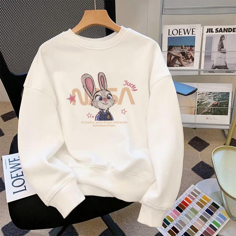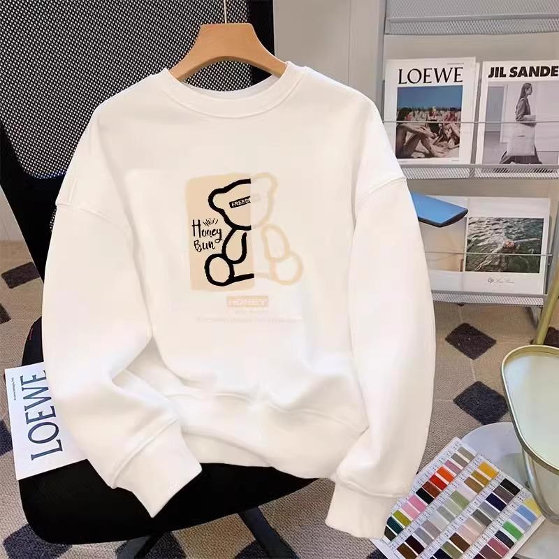 重磅纯棉白色圆领卫衣女秋冬季加绒加厚2025新款爆款时尚洋气上衣