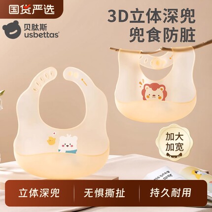 贝肽斯宝宝围兜硅胶儿童吃饭围嘴加大加宽防水罩衣婴儿辅食喂饭兜