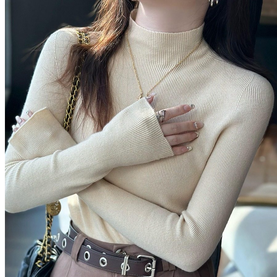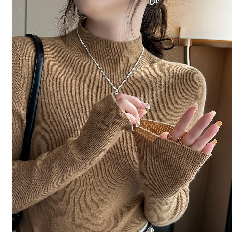 羊毛打底衫女秋冬新款内搭高级感灰色半高领毛衣中领针织上衣