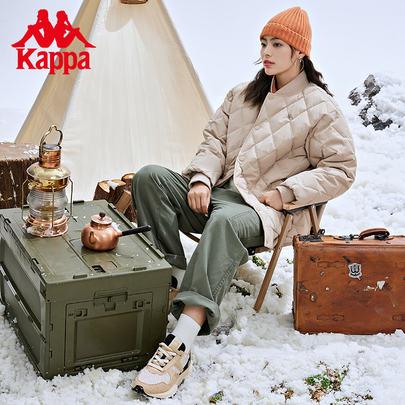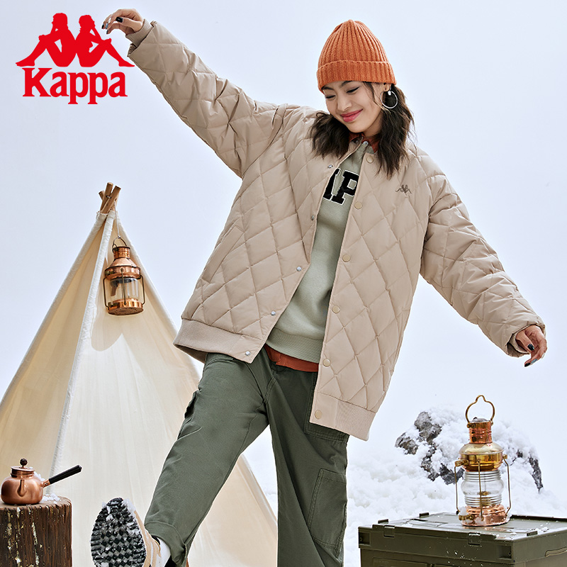 Kappa卡帕学院风新款羽绒服女款绗缝保暖无领防寒外套K0C82YY02D