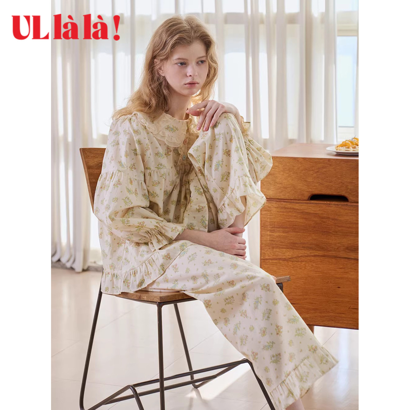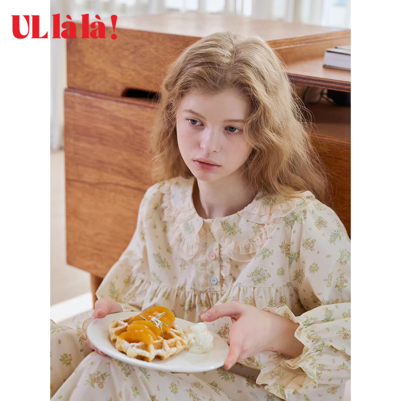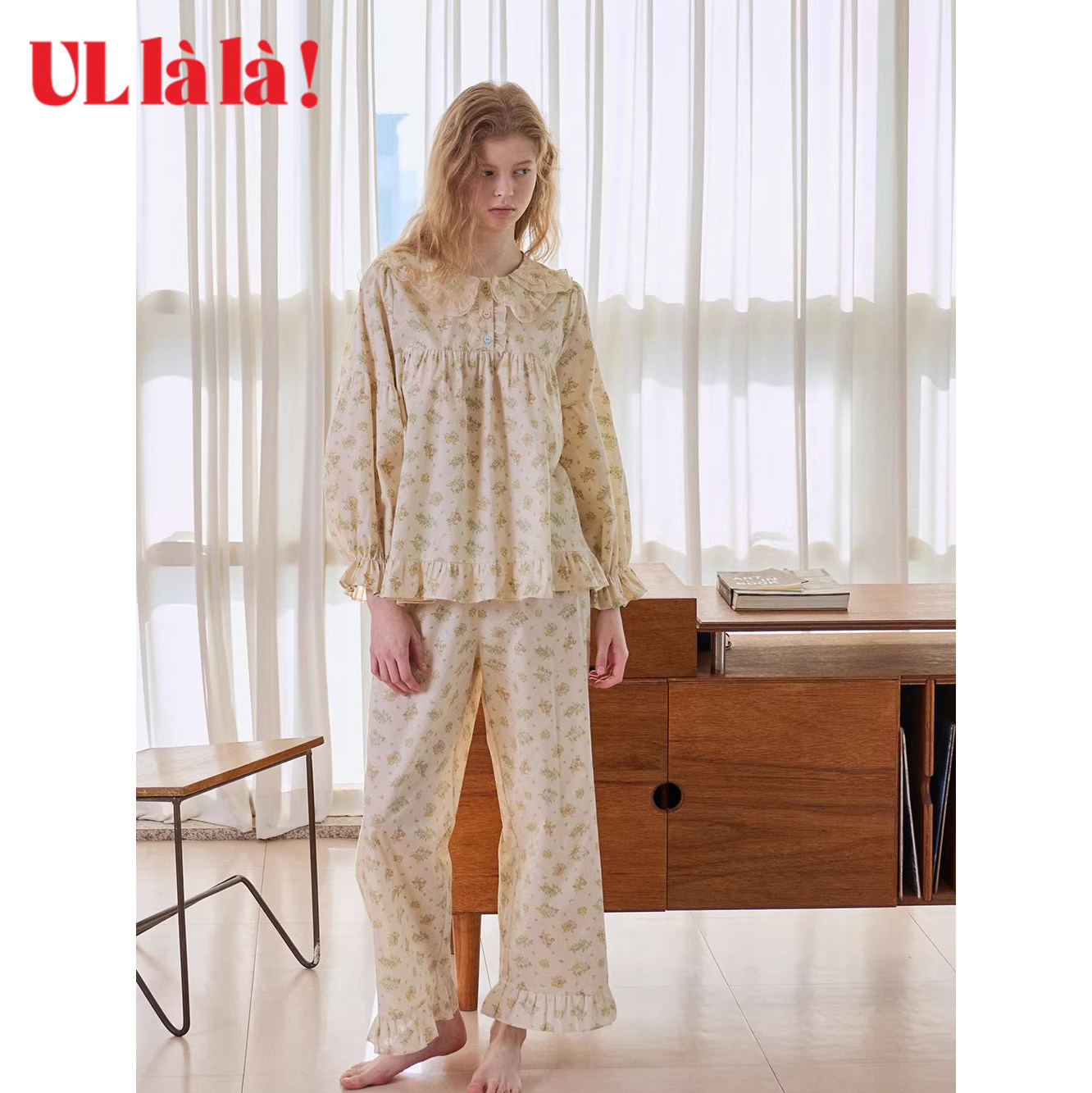 Ullala乌拉拉韩国进口甜美女士碎花娃娃领家居服套装舒适睡衣春夏