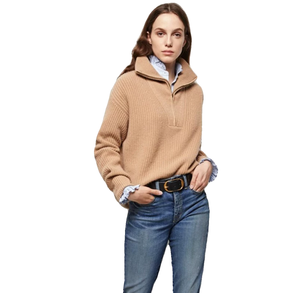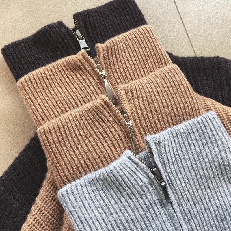 重磅秋冬新款半开拉链羊绒衫女宽松慵懒套头毛针织衫纯色打底毛衣