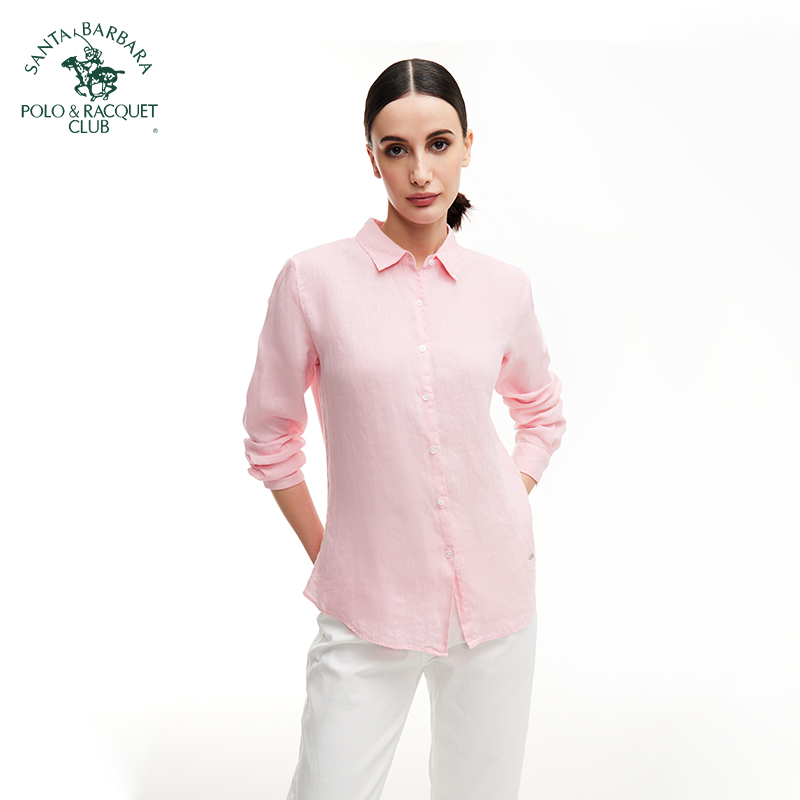 圣大保罗亚麻衬衫女纯色Polo领夏季宽松衬衣通勤翻领薄款防晒上衣