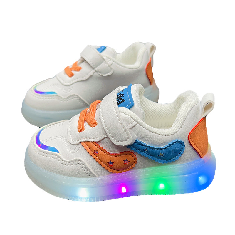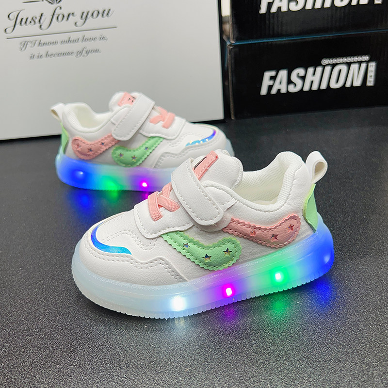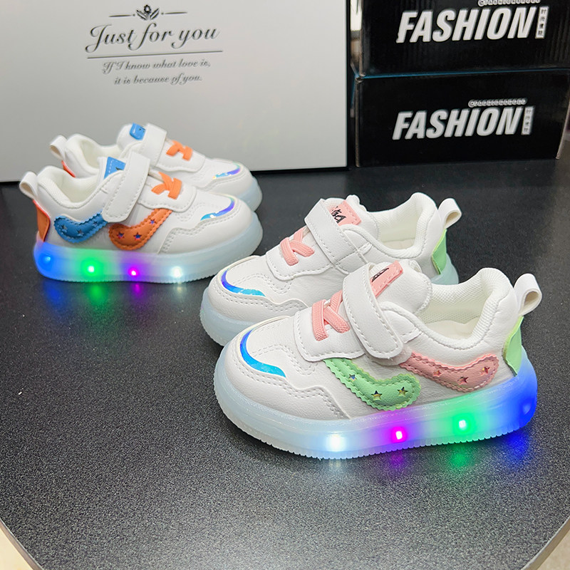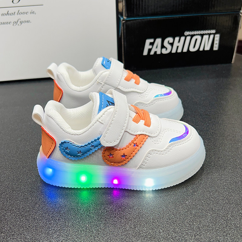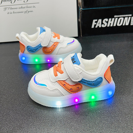 春秋季宝宝学步鞋带灯婴儿鞋0-1-3-5岁男女童低帮板鞋小白鞋发光4