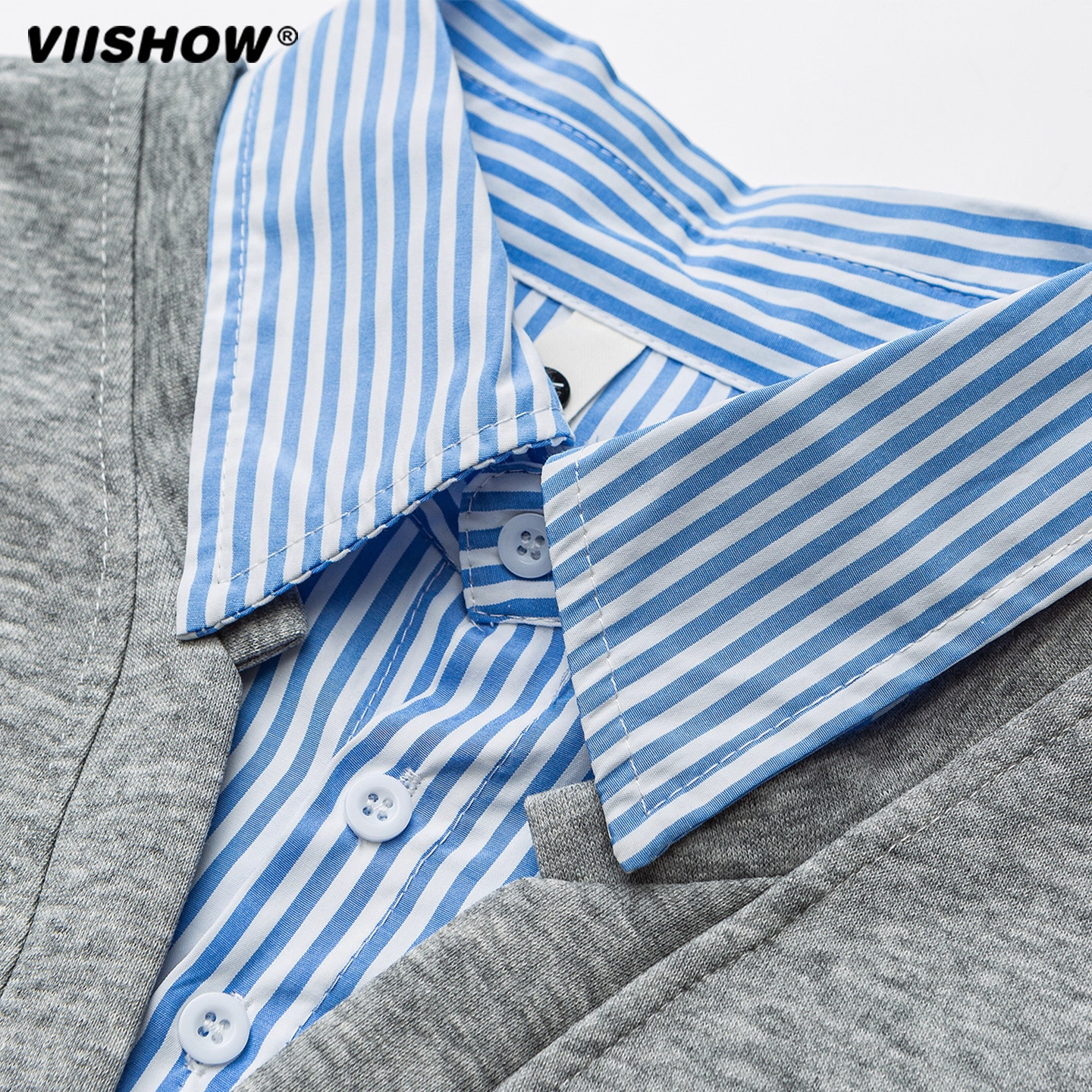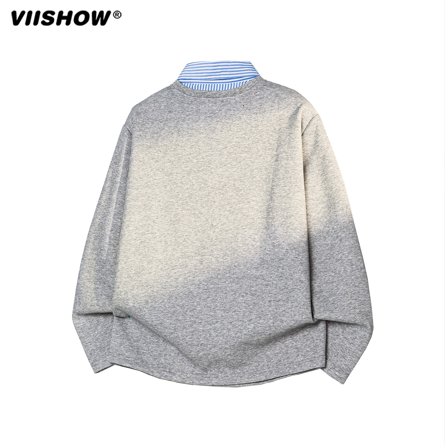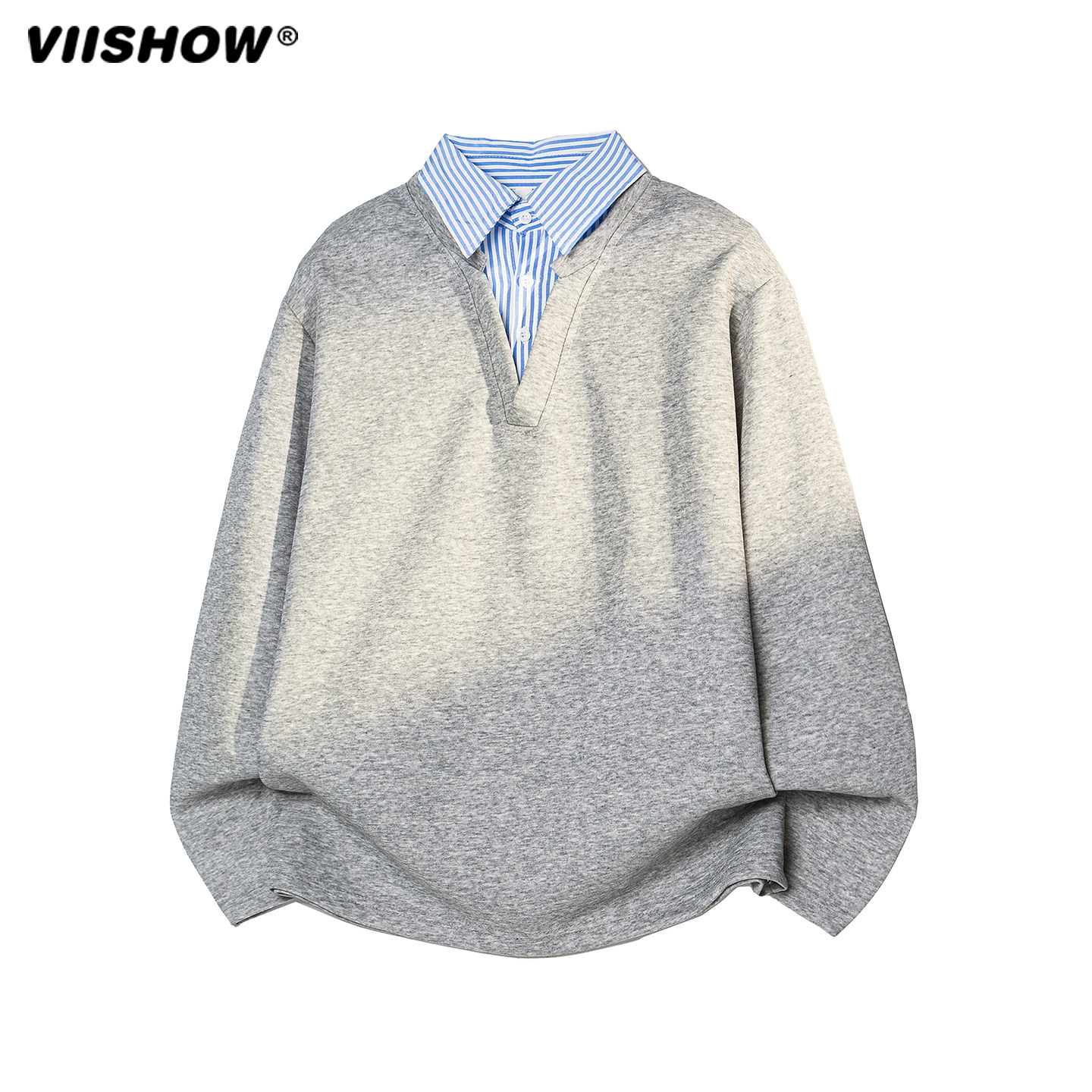 VIISHOW复古假两件拼接翻领卫衣男秋季潮牌宽松情侣休闲套头上衣
