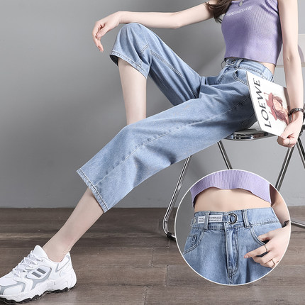 七分裤女春秋薄款2024新款高腰显瘦宽松小个子直筒阔腿牛仔裤子女