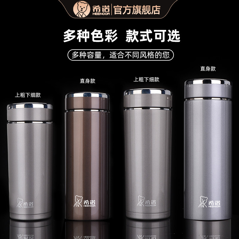 希诺保温杯男女士车载杯子大容量不锈钢高档饮水杯商务办公泡茶杯
