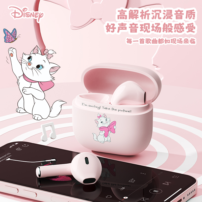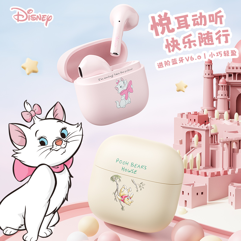 迪士尼DS18蓝牙耳机玛丽猫维尼熊情侣款无线降噪男女游戏半入耳式