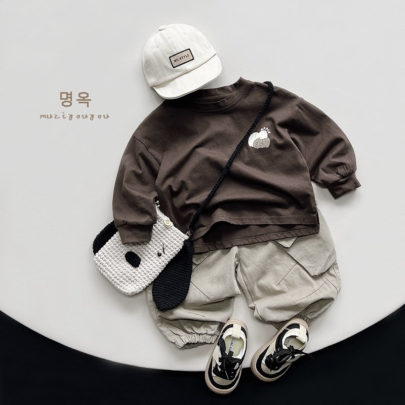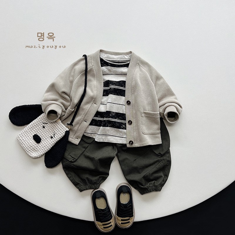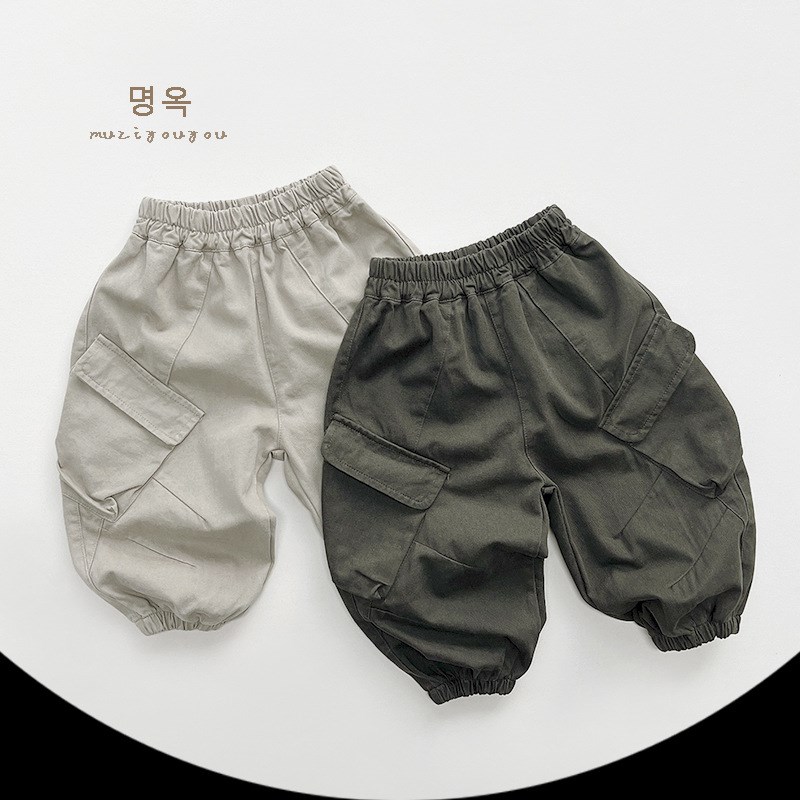 潮酷风男童纯棉口袋束脚工装裤 春款中小童宽松阔腿休闲长裤子