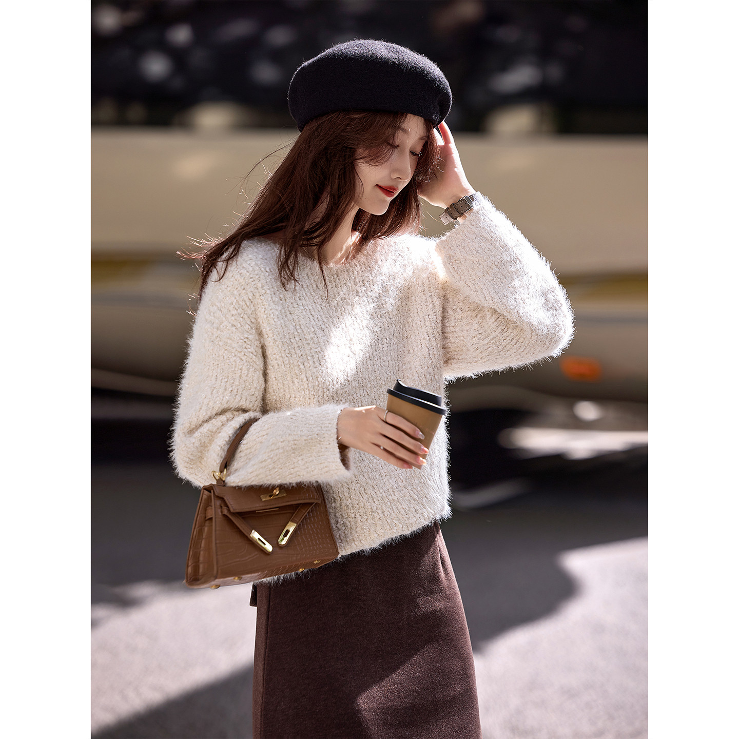 苏醒的乐园圆领纯色套头毛衣2025年冬季新款针织衫女装上衣
