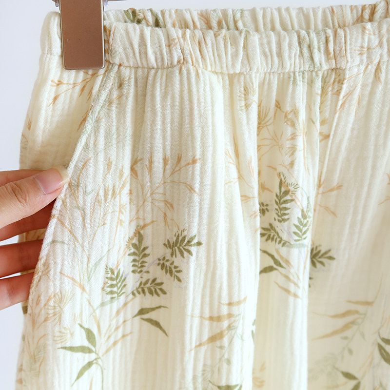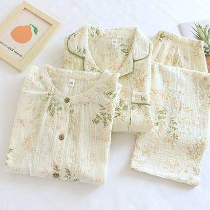 睡衣女大码春秋纯棉双层纱布