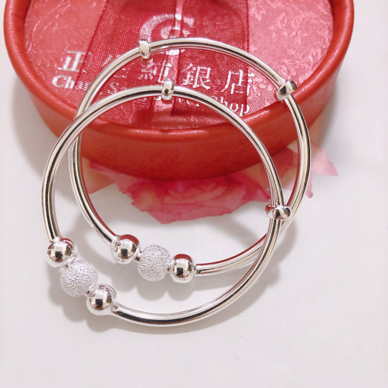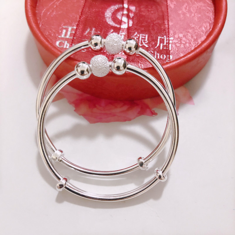 正品香港正生银饰男女宝宝磨砂珠转动珠手镯足银999满月周岁生日