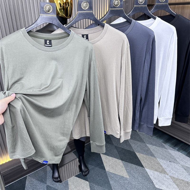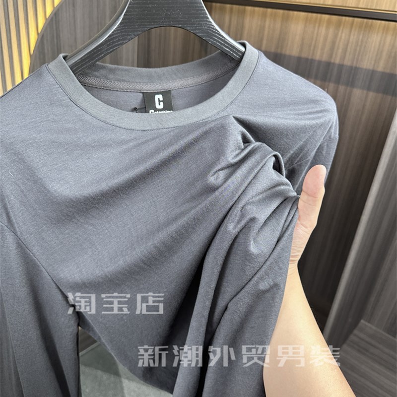 铜氨丝面料!柜1000+!丝滑透气!夏季男士轻薄打底圆领长袖T恤衫