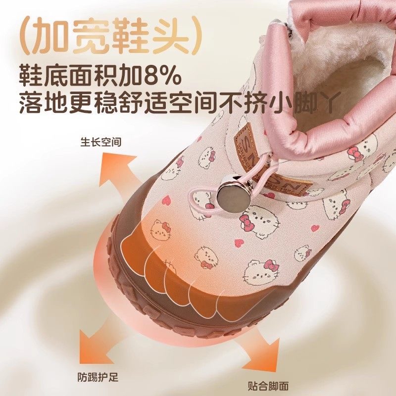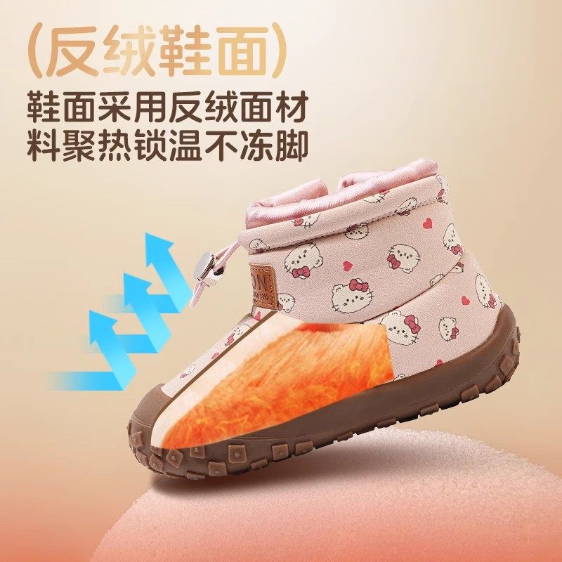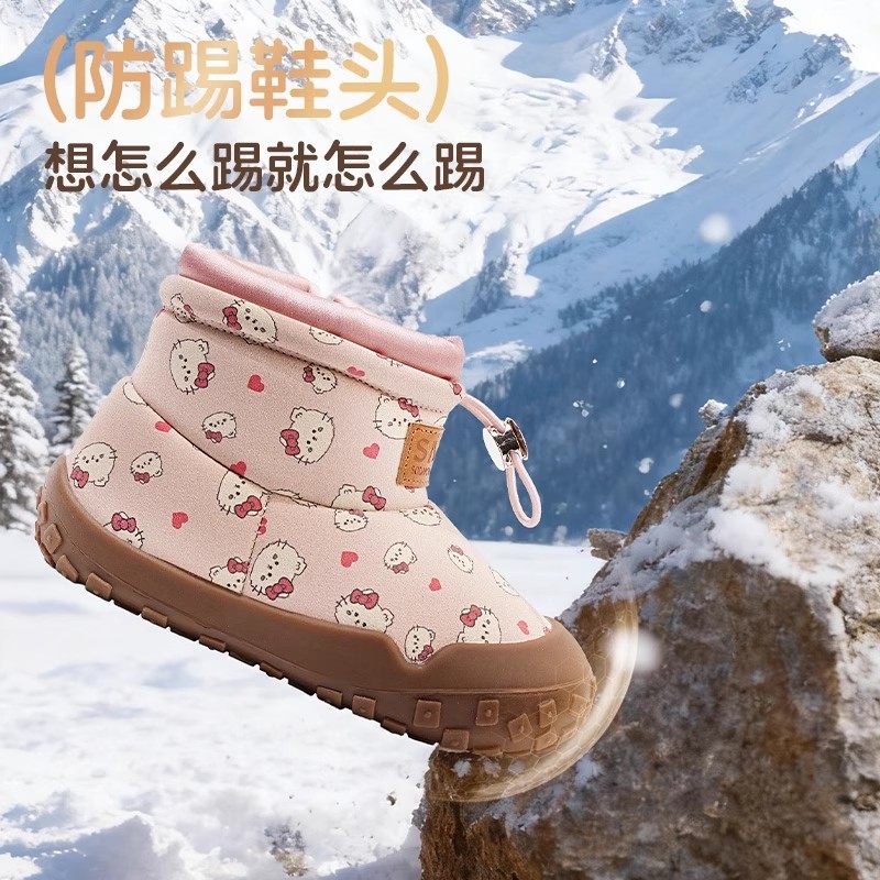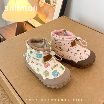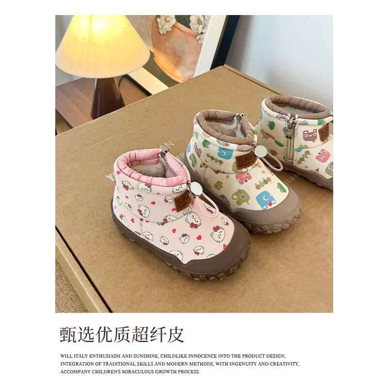 书萌儿童雪地靴加绒保暖冬季女童短靴宝宝鞋卡通印花大棉鞋小童鞋