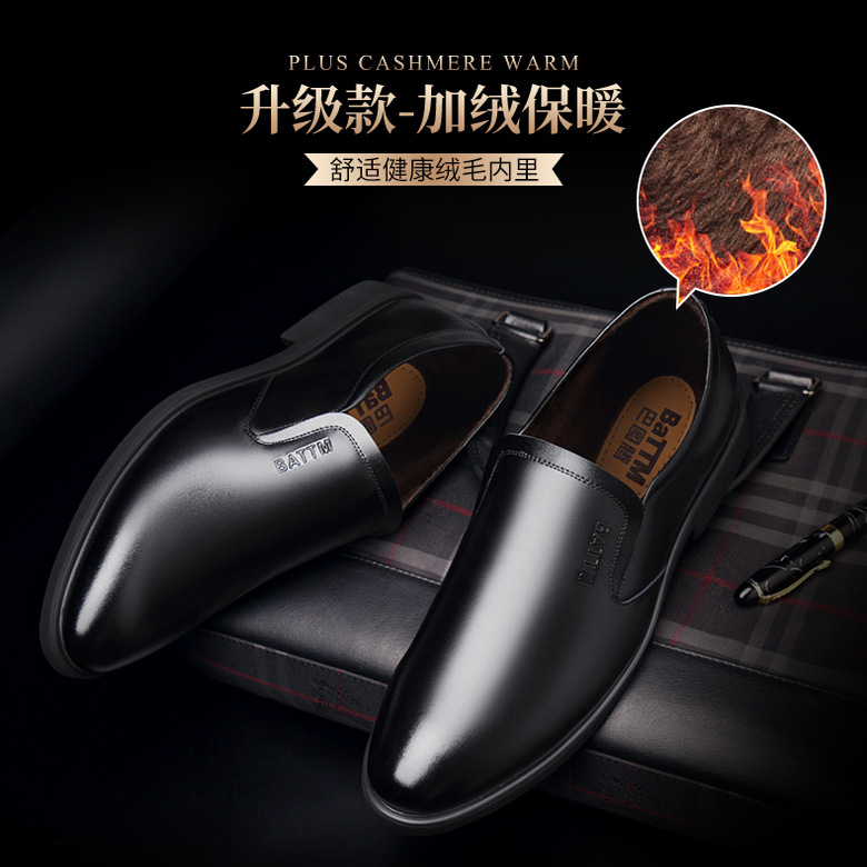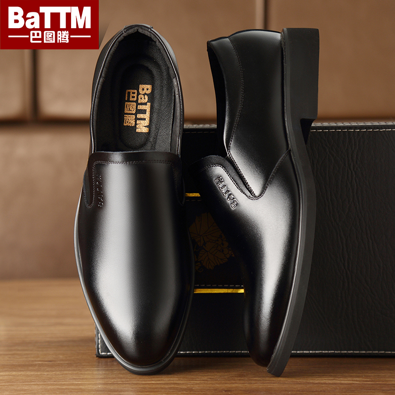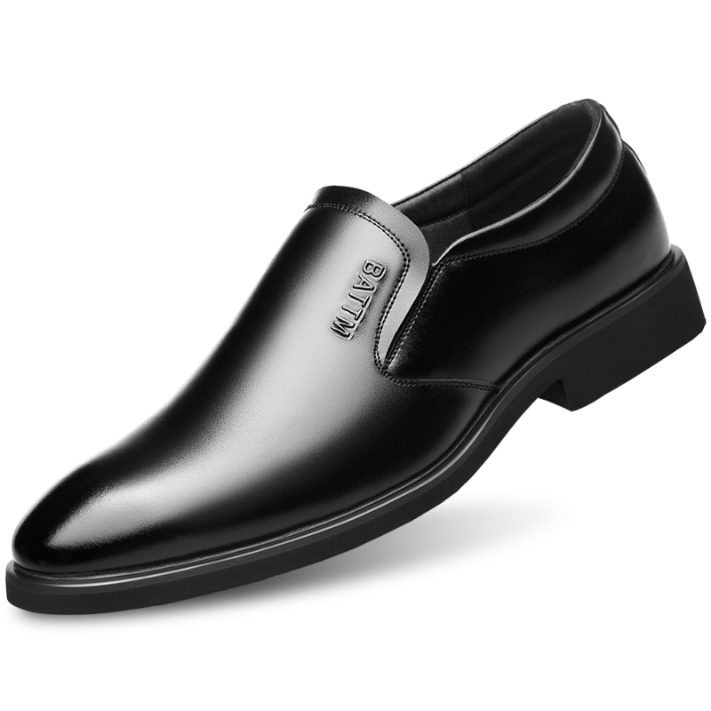 男士皮鞋真皮夏季透气商务休闲正装黑色软底套脚一脚蹬中年爸爸鞋
