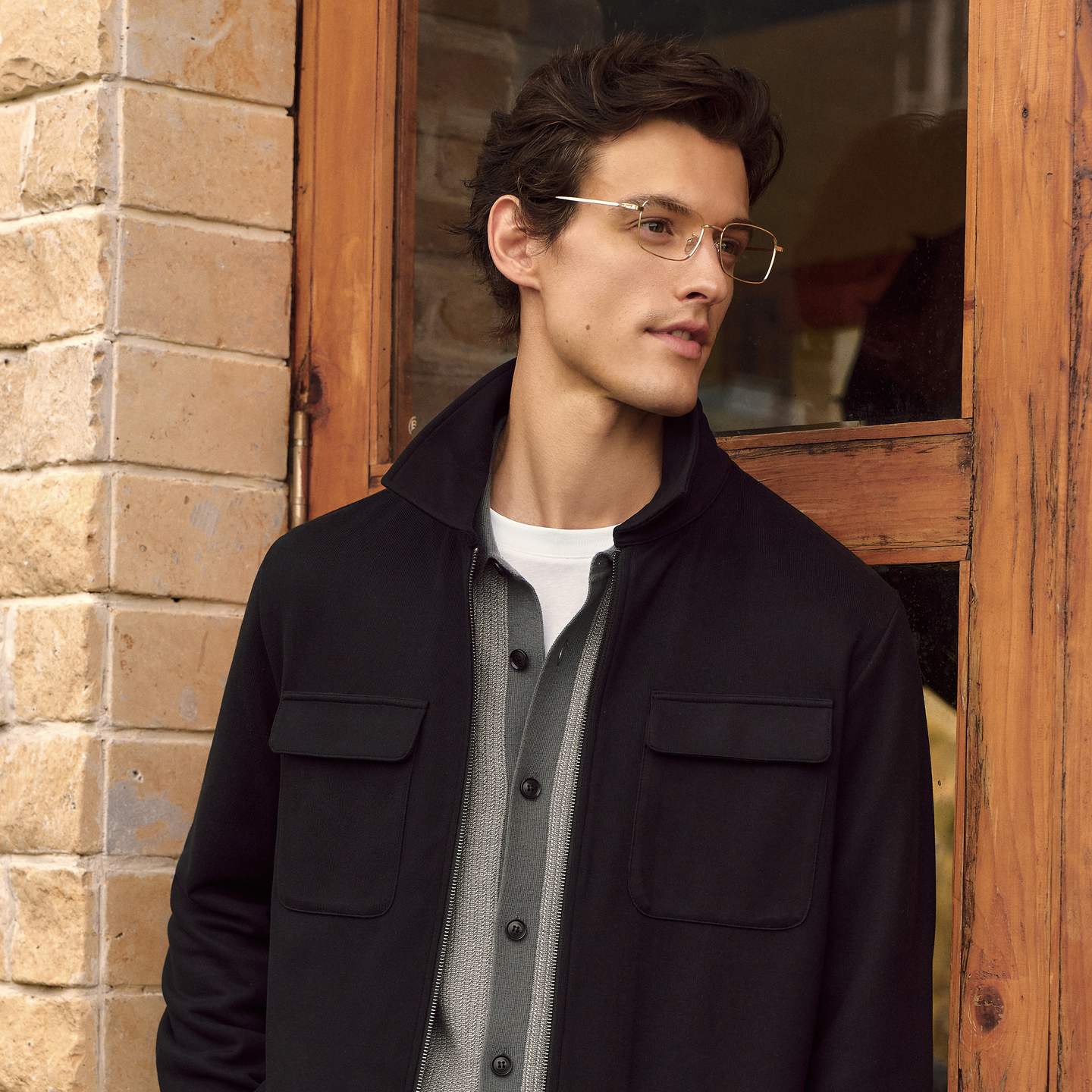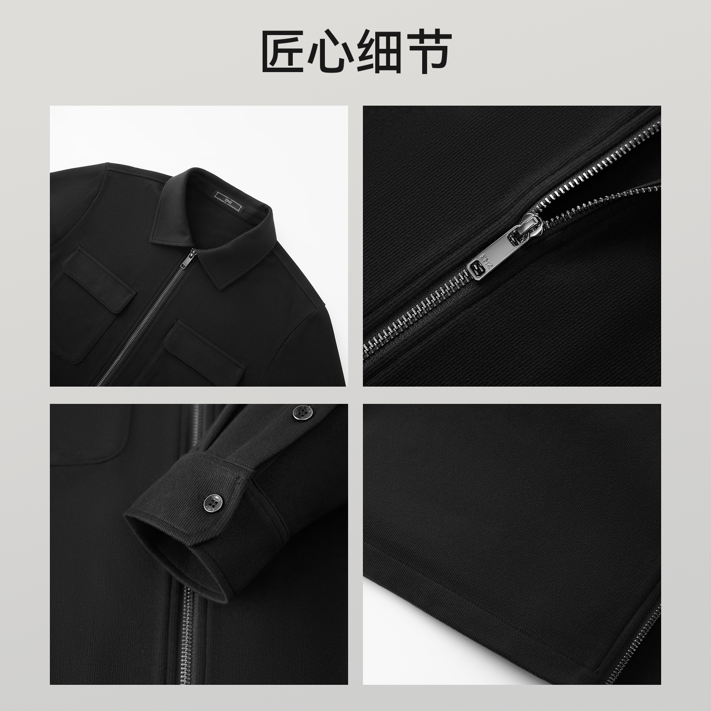 【含羊毛】EMZ鄂尔多斯秋冬新款休闲翻领黑色短款时尚夹克外套男