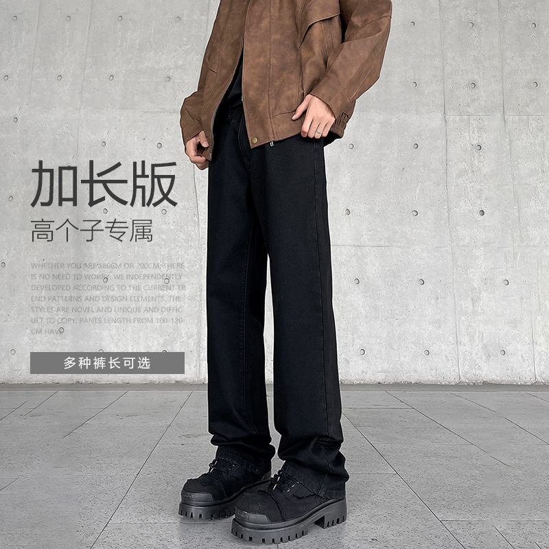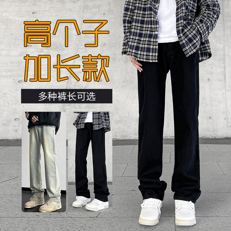 190CM加长款直筒黑色牛仔裤男超长高个子裤长青少年秋季百搭潮牌