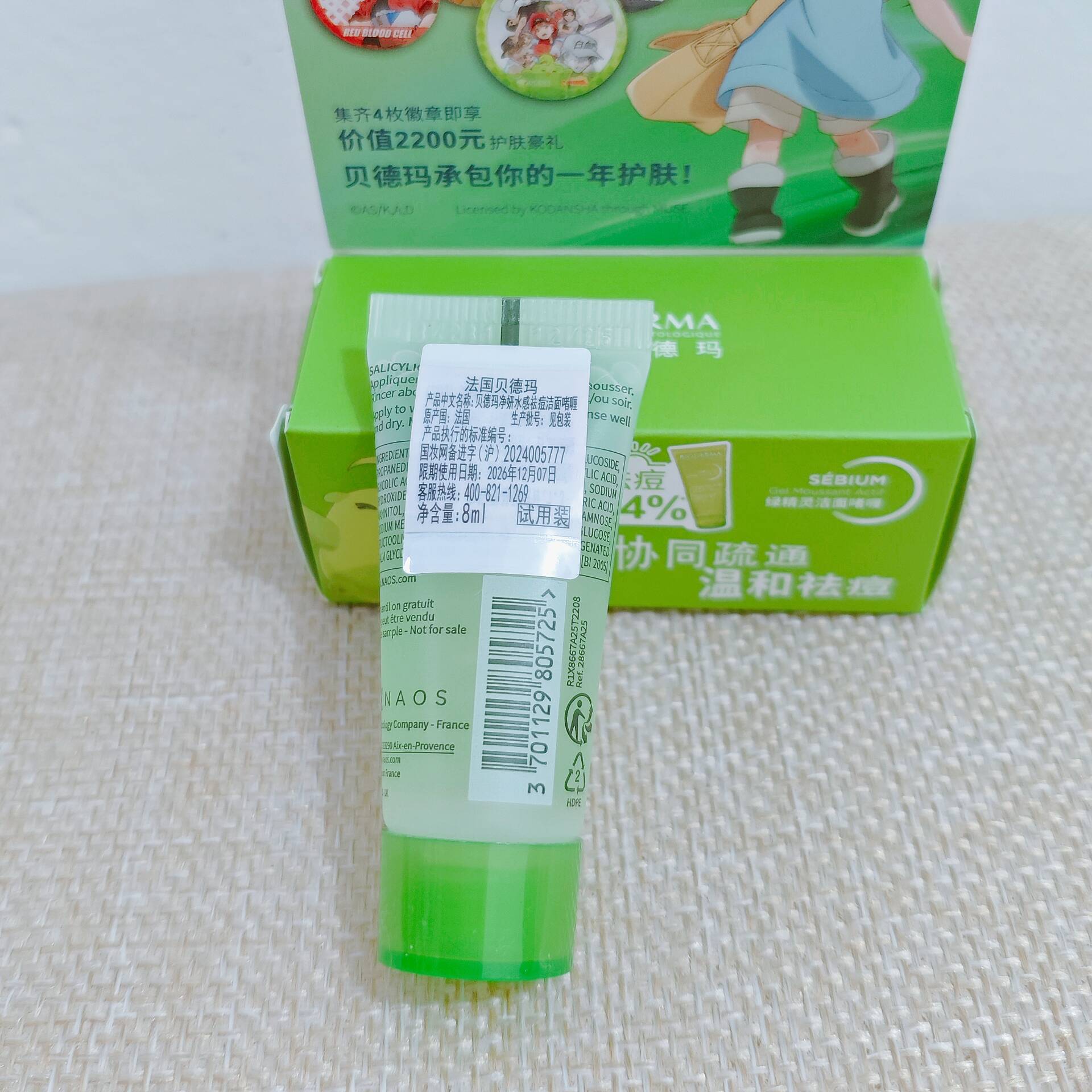 贝德玛净妍水感祛痘洁面啫喱试用装小样8ml水杨酸控油满10个包邮