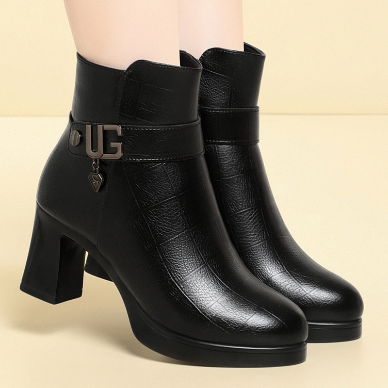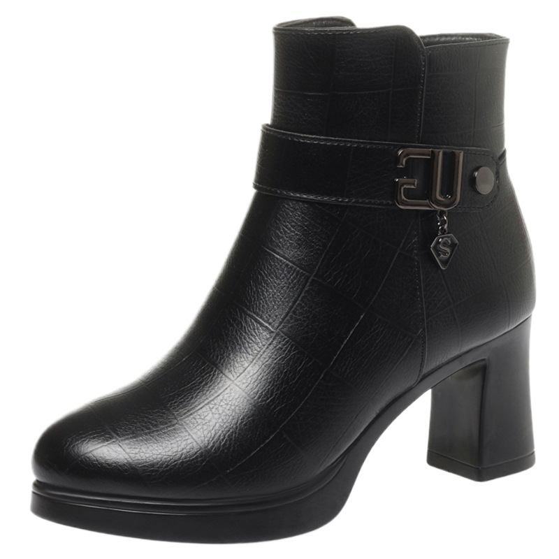 防水台短靴女粗跟高跟鞋配裙秋冬