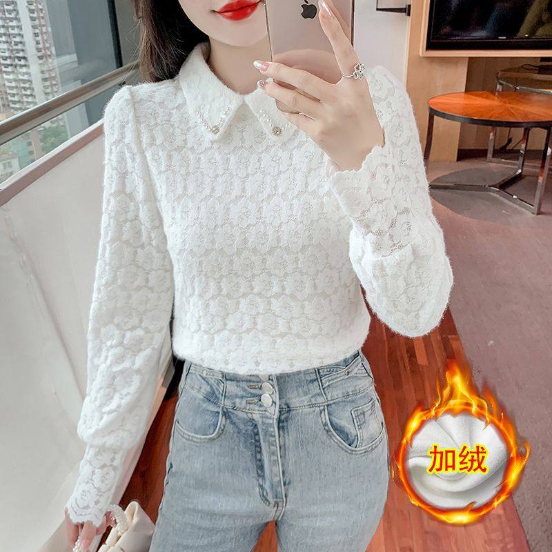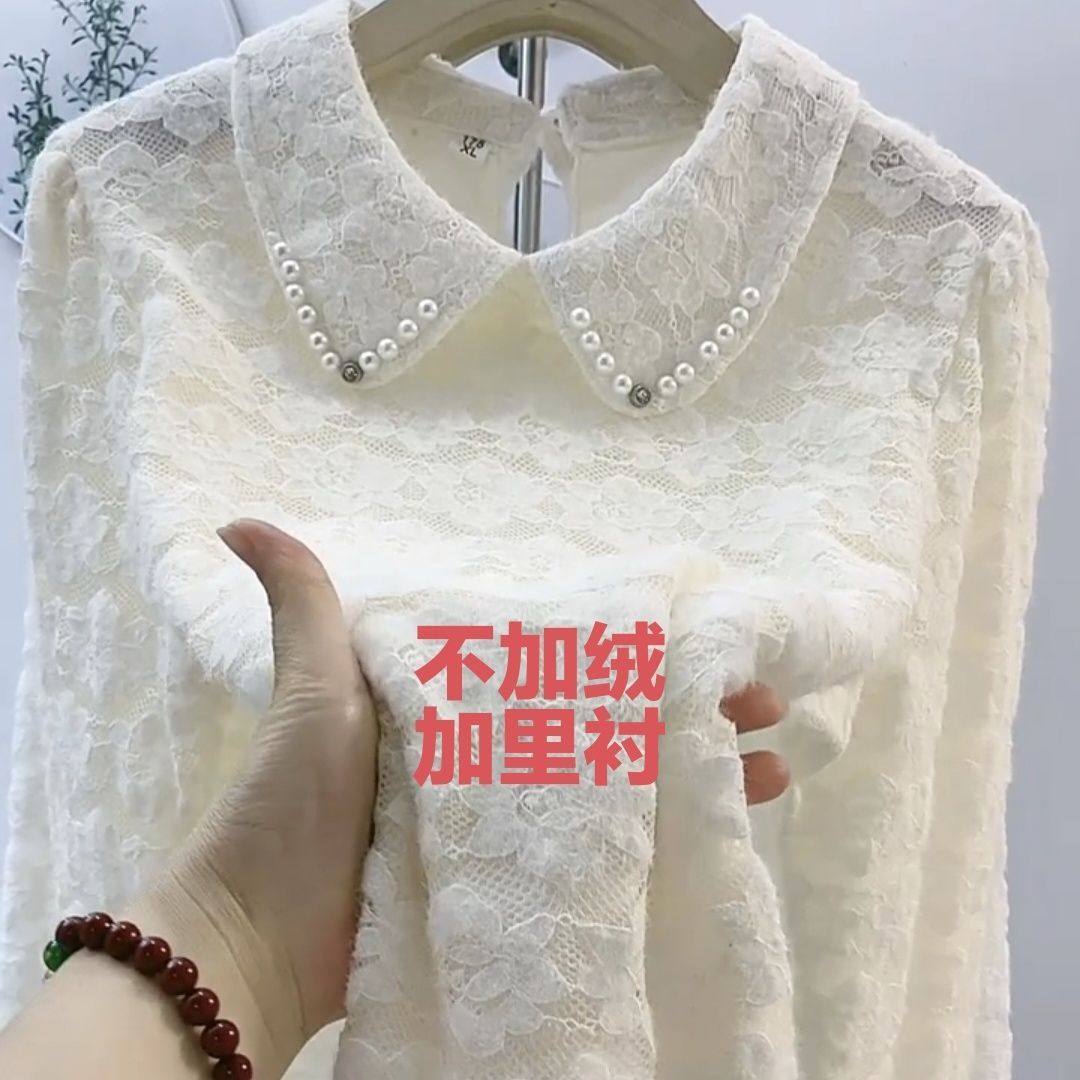 蕾丝打底衫衬衫女加绒加厚2024新款秋冬洋气时髦时尚气质内搭上衣