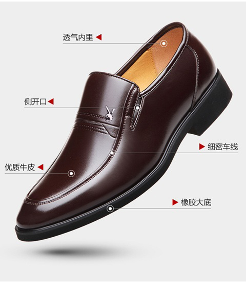 花花公子皮鞋男秋冬季真皮潮流增高男士商务正装休闲中老年爸爸鞋