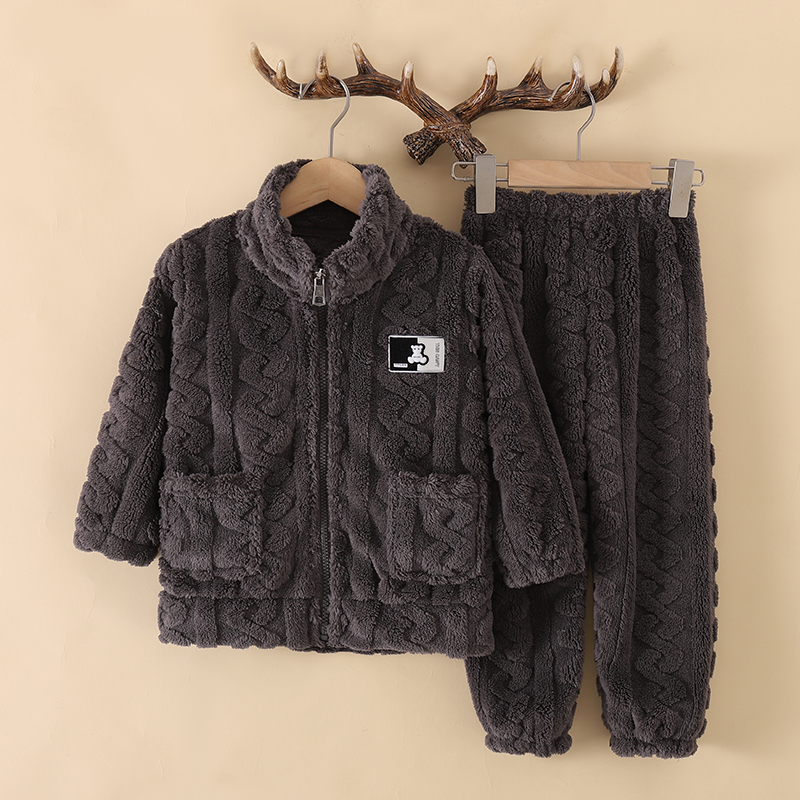 秋冬季儿童睡衣男童法兰绒男孩加厚珊瑚绒冬款女童宝宝家居服套装