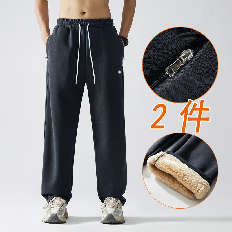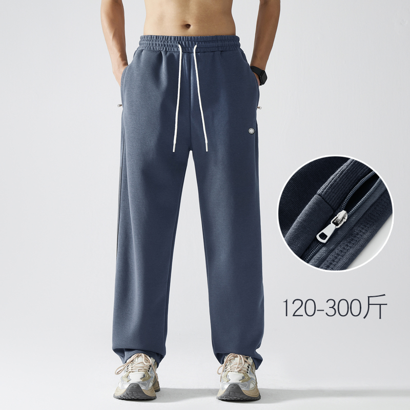 运动裤男秋季秋冬加绒加厚加肥加大码直筒裤胖子中年针织休闲卫裤