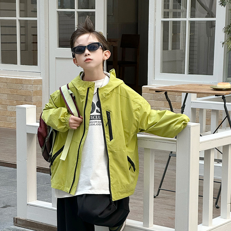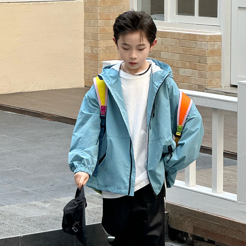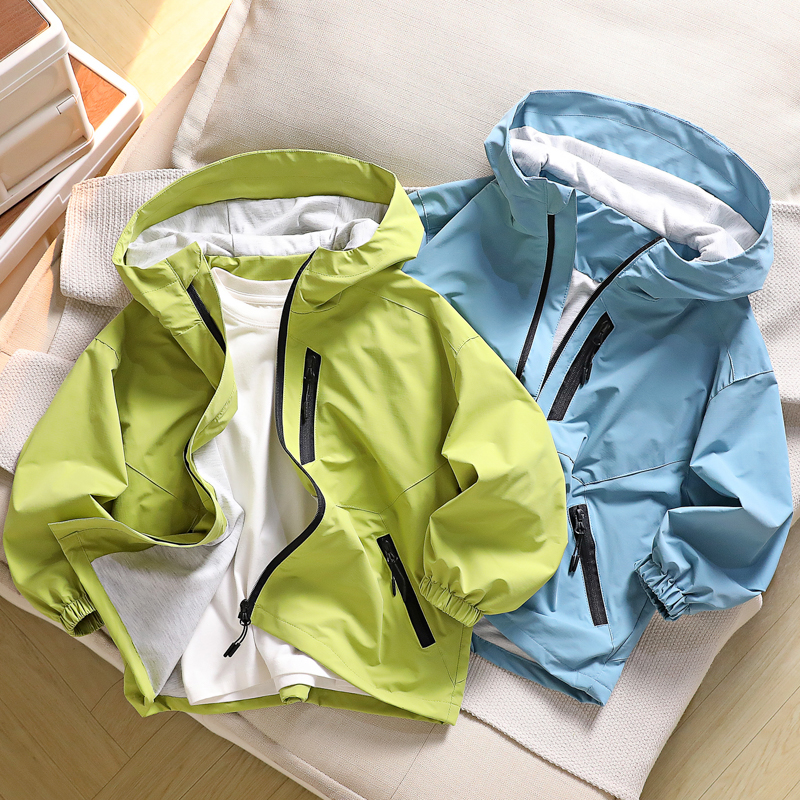 【2件8折】男童外套春秋款男孩户外撞色儿童装连帽防水冲锋衣夹克