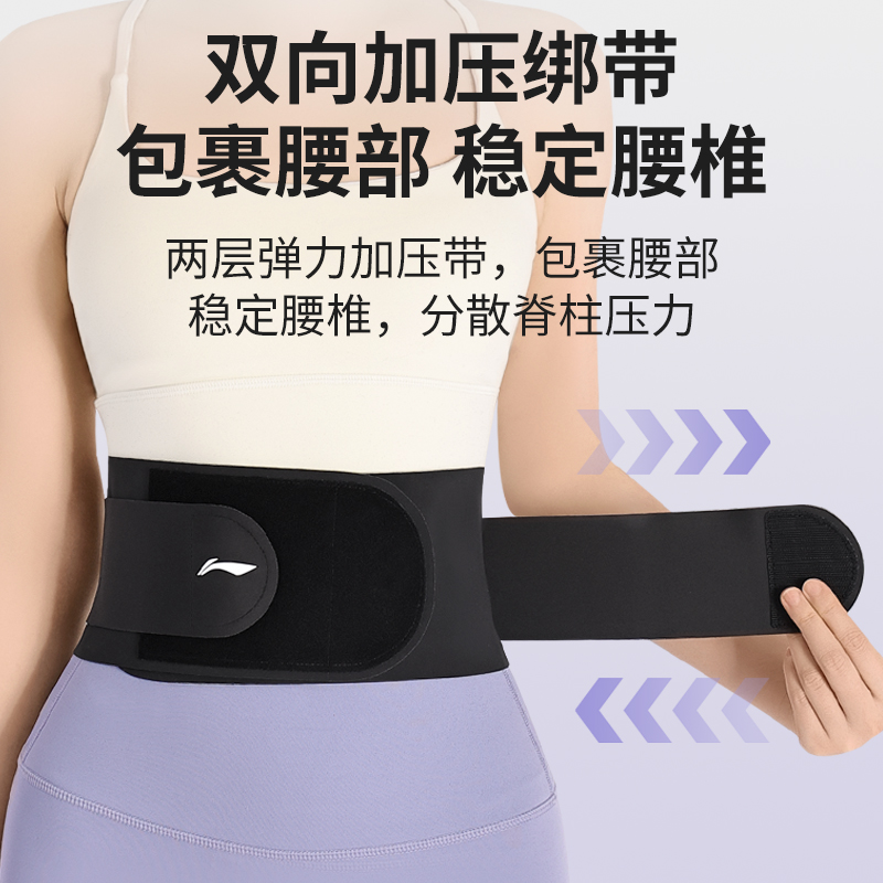 李宁护腰带女运动健身收腹束腰薄办公久坐训练疼痛腰椎间盘托跑步
